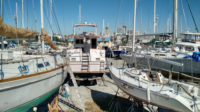 It is hot and dirty and smelly. Especially as my job is to sand the remaining debris from the black water holding tank, so that we can repurpose that space for storage. Oh yes, there is a much longer story here! More about the holding tanks next time!