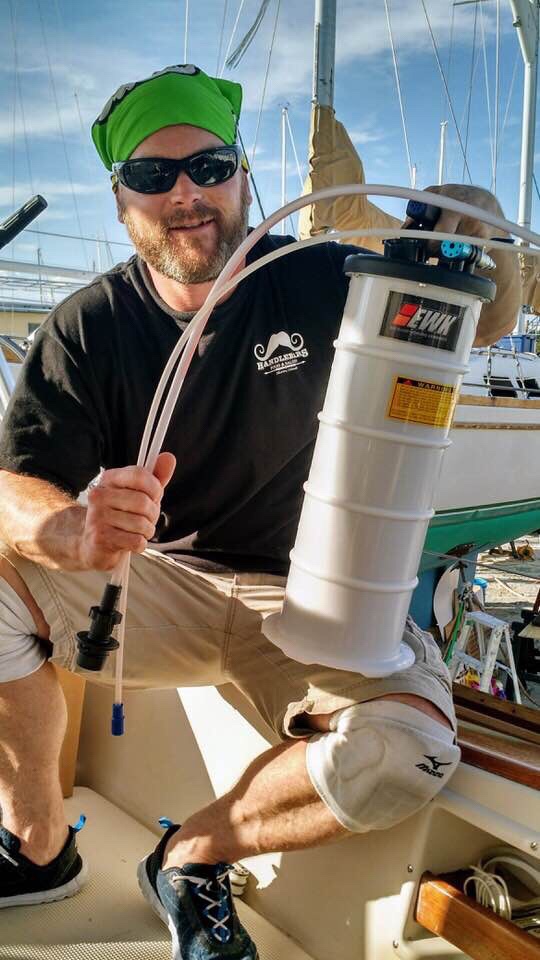 …. the clumsily named “pneumatic / manual oil changer vacuum fluid extractor.” Made performing an oil change on our diesel engine and transmission MUCH easier. And no electricity required. Now we just need to do an oil change on the outboard motor to complete the cycle.