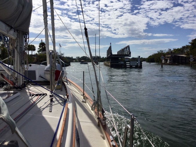 The trip is broken up by passage under many bridges: bascule, or draw bridges, and swing bridges. On the day after Sarasota, we passed under 10 bridges that needed to open to provide clearance for our 50 ft mast.