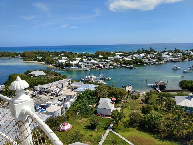 It gave us the opportunity to explore the picturesque Hope Town lighthouse. It’s the only kerosene-powered lighthouse left in the world. And it is gorgeous! Painted in bold red and white stripes like a giant candy cane, in contrast to the tropical vegetation surrounding it, the lighthouse grabs your eye from the harbor, and provides amazing views from the top of its 169-step spiral staircase.
