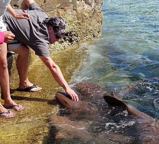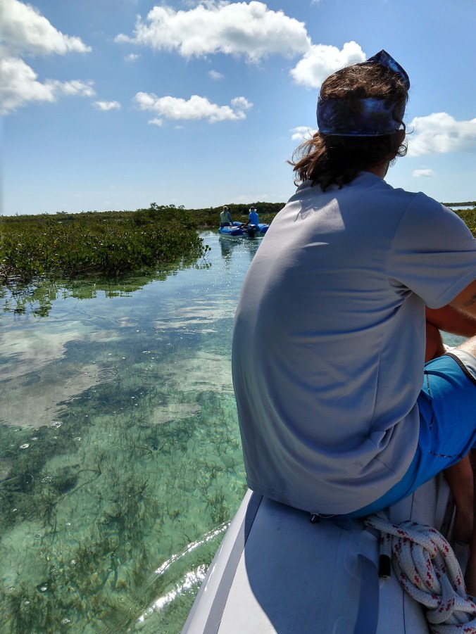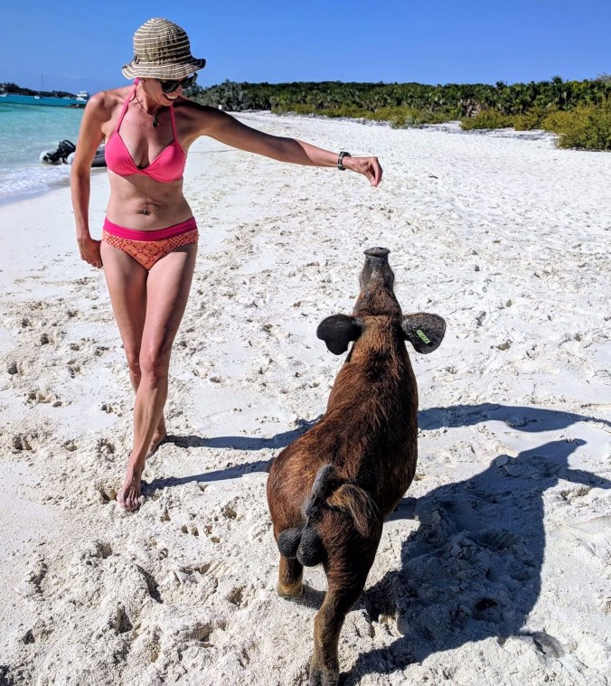 We put the time to good use, continuing to perform boat repairs in exotic places. Capt. Mike gave Sanitas an oil change, and I washed the deck and all the port lights (sort of like a spa day for boats). It took two days to do all the laundry, fill the diesel and water tanks, top up the propane, and reprovision. Mike fixed the strike plate on the cabin door, refilled all our spice canisters, and defrosted the fridge. Most importantly, we continued our quest to FIX ALL THE LEAKS by scraping, cleaning, and re-caulking the port side toe rail, all the way back to the chain plates. That’s a continuation of the work we started in Miami and Marsh Harbor to keep sea water out of our forward cabin. Hopefully, this last attempt does the trick, and any additional repairs can wait until the next time we have Sanitas hauled out in a boatyard. A huge sense of accomplishment here!
