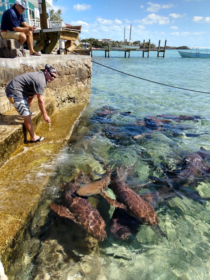 For once, our timing was impeccable, and Sanitas was safely docked just in time for the weekly manager’s happy hour event. Since there’s little that cruisers enjoy more than free food and free drink, the club was full by the 5:30 start time. We enjoyed meeting a new crowd, and matching faces to the boat names we’d heard on the radio, such as Archipelago, Full Circle, and Polaris. And it was great to hear of Tapati’s journey across the central and southern Bahamas, while we had taken a very different route to the North.