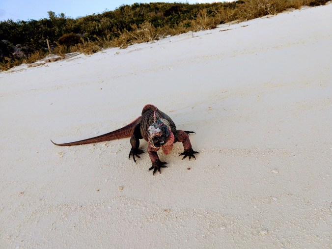 The Marina at Emerald Bay was just the ticket; providing a nice contrast to the past couple of weeks of living on the hook. It provides a large, protected harbor with floating docks, hot showers, free laundry, access to beautiful running trails, and beaches. Oh, and best of all, they provide an unadvertised special rate for cruisers. If you don’t need to be connected to shore power, you can tie up for $1.00 per foot – an unheard of rate in The Exumas. Plus, as an added bonus, our friends Pat and Melana on Tapati were here! The last time we’d seen these St Petersburg friends, we were sadly watching them sail east from Rodriguez Key to Bimini without us, as we instead headed north to Miami to perform some boat repairs. We eagerly anticipated catching up and hearing about each other’s cruising adventures.