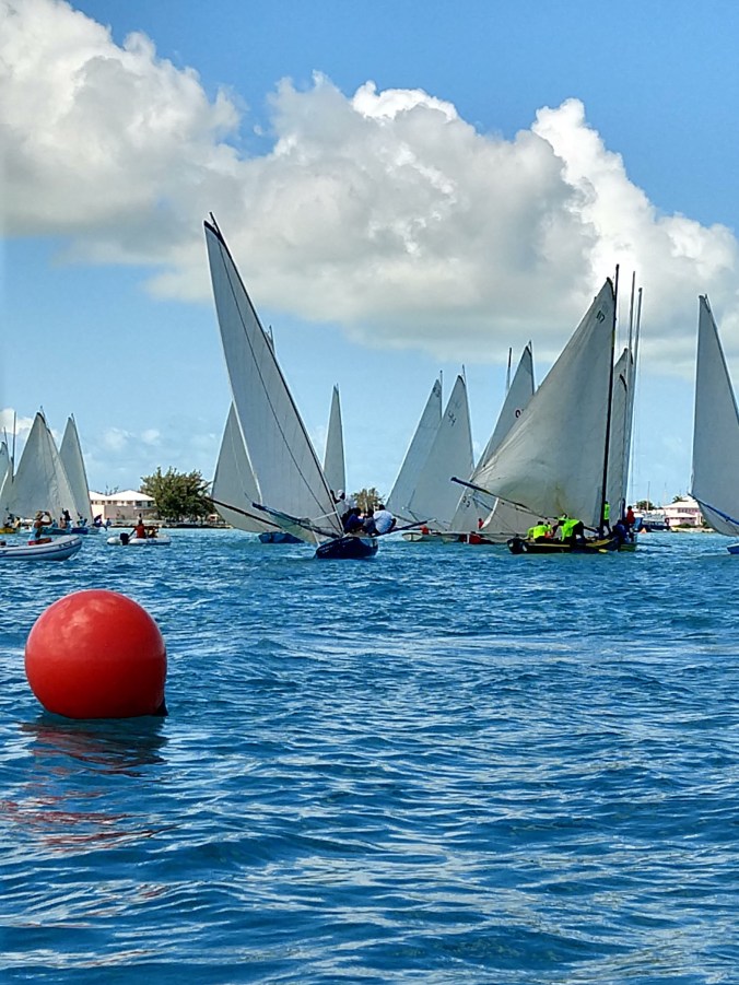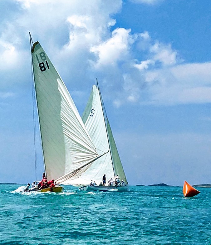 The first day of the regatta consisted of cup races – winner takes all. It was a beautiful day of blue skies, light winds, and the smell of competition in the air. It all seemed a bit chaotic on that first day; the race schedule just a suggestion, the race course changing frequently based on the direction and magnitude of the wind, warning guns going off at seemingly random times. But we eventually got the hang of things. The best seat in the house to watch the races is from a dinghy, anchored just off the starting line buoy. From this vantage point, you can watch the racing sloops sail or get towed to the start – no motors on these babies – lower the sails, and set the anchor. After some jockeying for position, the starting gun blasts! Half the crew hauls with all of their strength on the anchor rode, giving the sloop enough forward momentum and speed to enable the other half of the crew to haul up the giant sail. A clean start gives the crew a huge advantage!