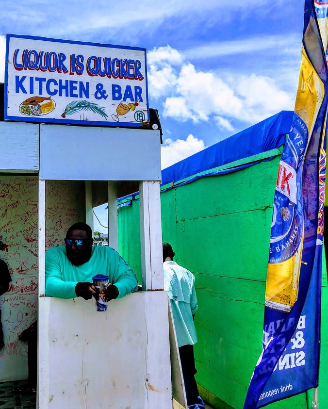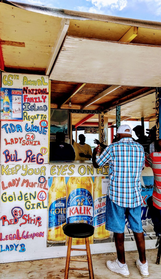 So while the races themselves were we loads of fun, the festival atmosphere surrounding the races was also worth the extra week in Georgetown. The week before the races, vendors built colorful plywood shacks on regatta point which became pop up bars and restaurants on race day. Kind of like a county fair back home. Except instead of buying cheese curds, fried snickers, and beer you can buy conch fritters, sheeps tongue souse, and sky juice (aka gin and coconut water). Special ferries brought thousands of people to Exuma for the event, and everyone dressed up and hit the party. Kids were hyped up on sugar, fair games, and cheap plastic toys. Teenagers were looking each other over, flirting and pushing. And adults were renewing friendships with folks from other islands that they might only see once or twice a year. The people watching is top notch, let me tell you!