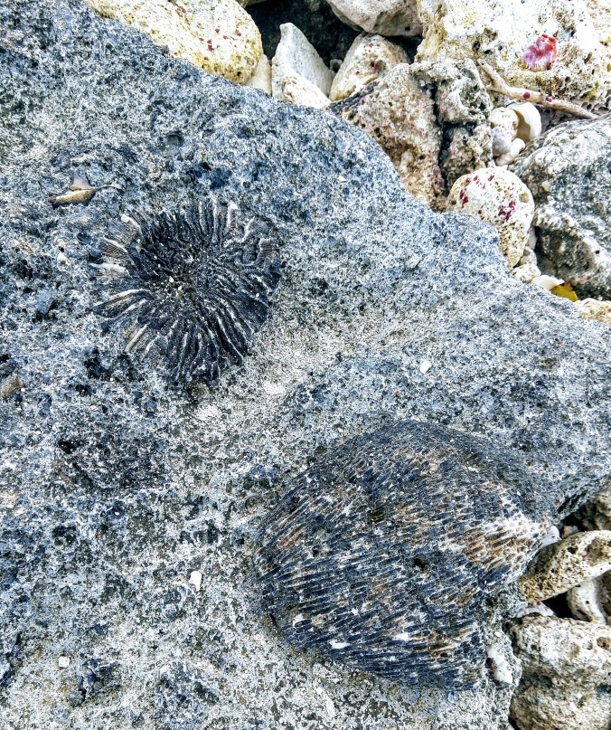 Have to admit I got a little carried away exploring and taking pictures of the rocky shore made up of limestone, coral, shells, and stromatolites – fossilized remains of ancient single-celled microbes.