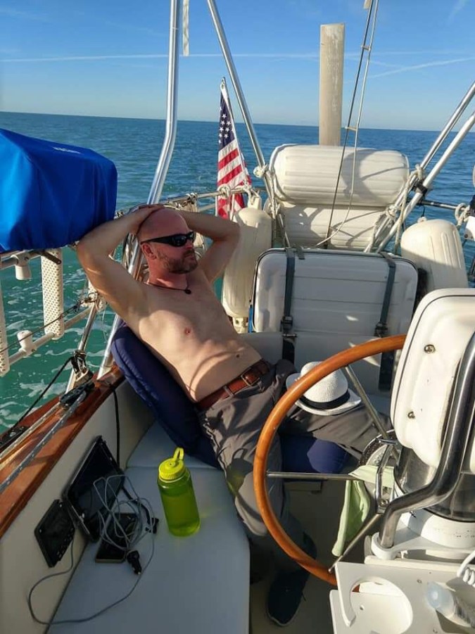 Around 9:00 I noticed that the wind had changed direction and picked up speed, as predicted. Maybe we could finally sail! I unfurled the jib, and trimmed the sails to the new wind direction on a beam reach, and put the motor in idle. I’m sailing! I’m sailing! With the motor and generator off, we buzzed along between 5 knots and 7 knots for the rest of our trip. Right up until we entered the busy channel and cruise ship port of Key West.