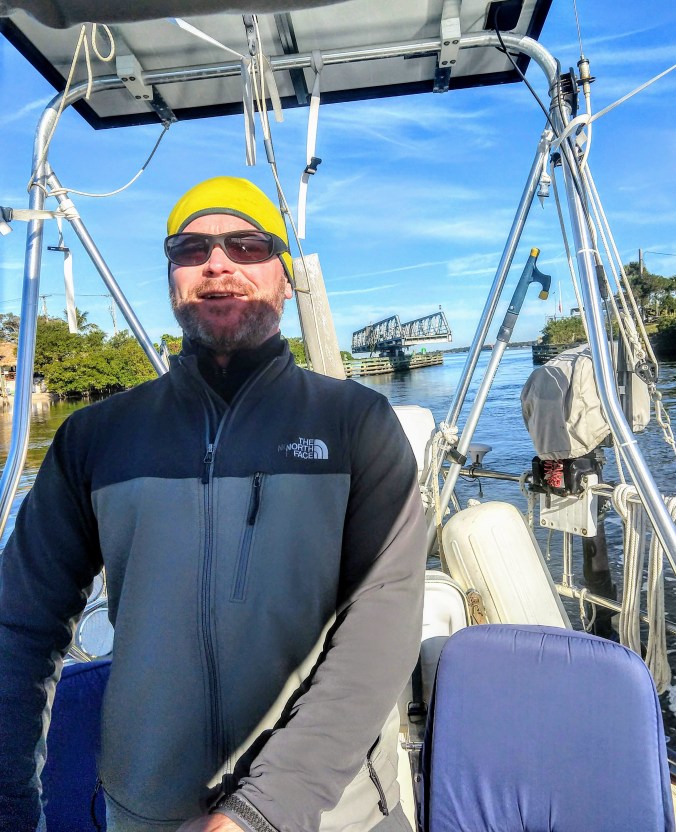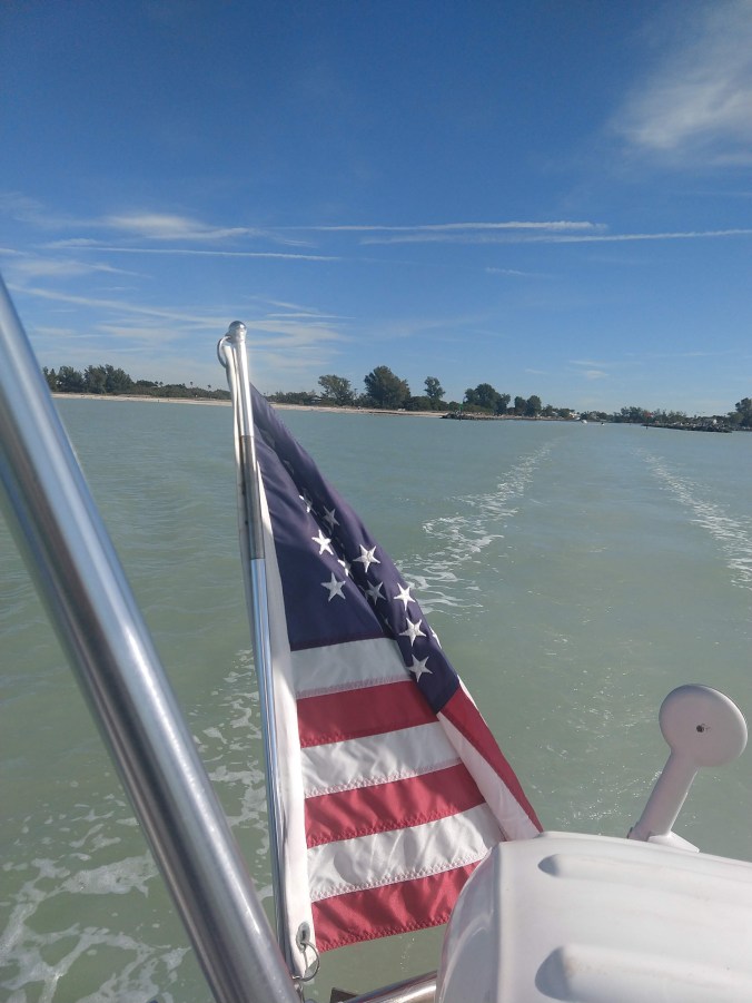 Capt. Mike and I had our first fight of the season (we’re getting a lot of firsts out of the way) The Siesta Key drawbridge bridge is about 1.5 miles from the mooring field and it opens every half hour starting at 7am. We were all packed up and ready to leave at 7am, but Capt. Mike kept putzing around belowdecks; making coffee, looking for a hat, reading Facebook. He said, “We don’t need to leave until 7:15.” Well, The runner in me did the math, and knew that at 5 knots, or a 12-minute mile, we wouldn’t make it to the bridge before it opened. So I pushed for an earlier start, starting the motor, going up on the bow to release the mooring lines, generally nagging. Finally, Capt. Mike got his butt in gear and we were off. After leaving the mooring field and making our way back into the ICW channel, the clock said 7:22 and the drawbridge was not even in sight. Even at full throttle, we couldn’t get there in time, missed the 7:30 opening, and had to make BFC’s until 8:00. Believe me, there were a lot of “I told you so’s” on Sanitas that morning. Then we had strong current against us while trying to make the next bridge, at three miles away, so we missed the next opening as well. So much for our early start.