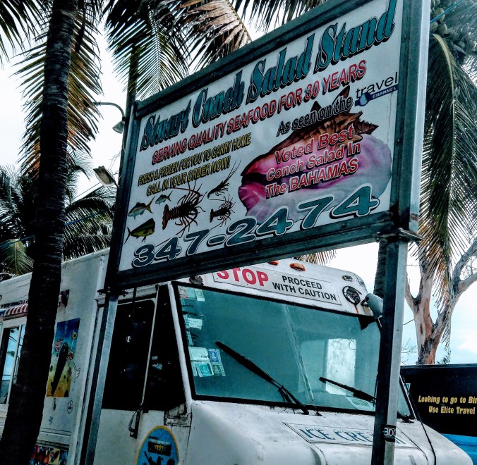 Everything runs on island time, and there is no such thing as fast food. So lunch can take the better part of the afternoon. After taking our orders, the waitress returned and asked, “For the people who ordered the pork chops, do you want the good news, or the bad news?” I chirped up “The bad news!” And I guess I stumped her. She couldn’t think of any bad news, just told us that the pork chops would be served grilled with barbecue sauce. I think that’s going to be my new motto for this cruising season, “There IS no bad news” 😀