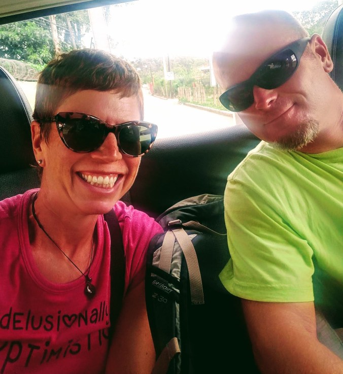 Caribe Tours busses connect the big cities of the Dominican Republic, and they are more like Greyhound – air conditioned with WiFi and toilets and even a movie. Heavenly! It cost us 100 pesos each ($2) to catch the Caribe Tours bus to La Vega. After that, the busses to the mountain resort town of Jarabacoa are few and far between, so we had a while to wait in the La Vega bus station. Plenty of time to explore the various food shacks around the block and to decide that our best options for a gluten free lunch, with our limited Spanish, was to point at whatever was left on the breakfast buffet. We ended up with the rest of the fried eggs and a huge scoop of mashed potatoes with pickled onions for each of us. The woman who served us was very patient, but everyone in the kitchen stuck their heads out the kitchen window to watch the crazy gringos try to order breakfast, lol.