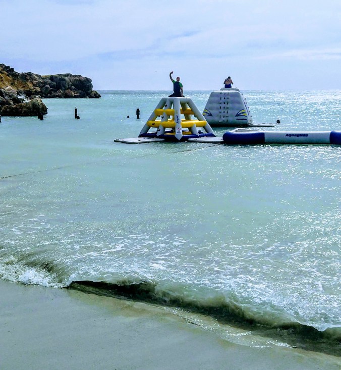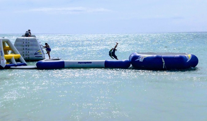Back at sea level, we hiked to the beach where day trippers visit from Ponce, and after the ferry departed, Capt Mike did a little American Ninja Warrior practice.