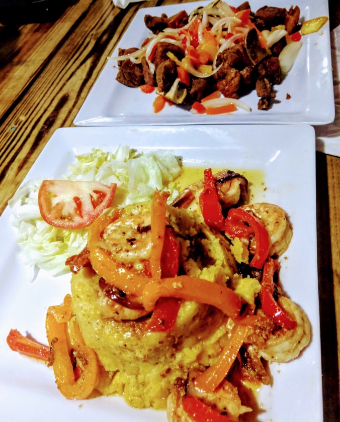 We lived to tell the tale, and soon anchored in Patillas harbor for a few days. Since we were here during the week, rather than on a weekend, town was quiet with very few restaurants open. But Paraiso Bar was open, and here Capt. Mike began his love affair with mofongo rellanos – mashed plantains cooked in garlic and oil and stuffed with fried pork or grilled shrimp.