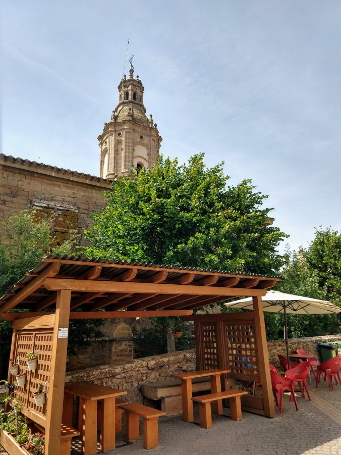 The next village of Villamayor de Monjardin is one of those stone cities high of a hill that you can see for miles as you walk toward it. We found a shady oasis just below the church tower for a picnic of chorizo, hummus, pate and olives, before heading to our final stop of the day in Los Arcos.