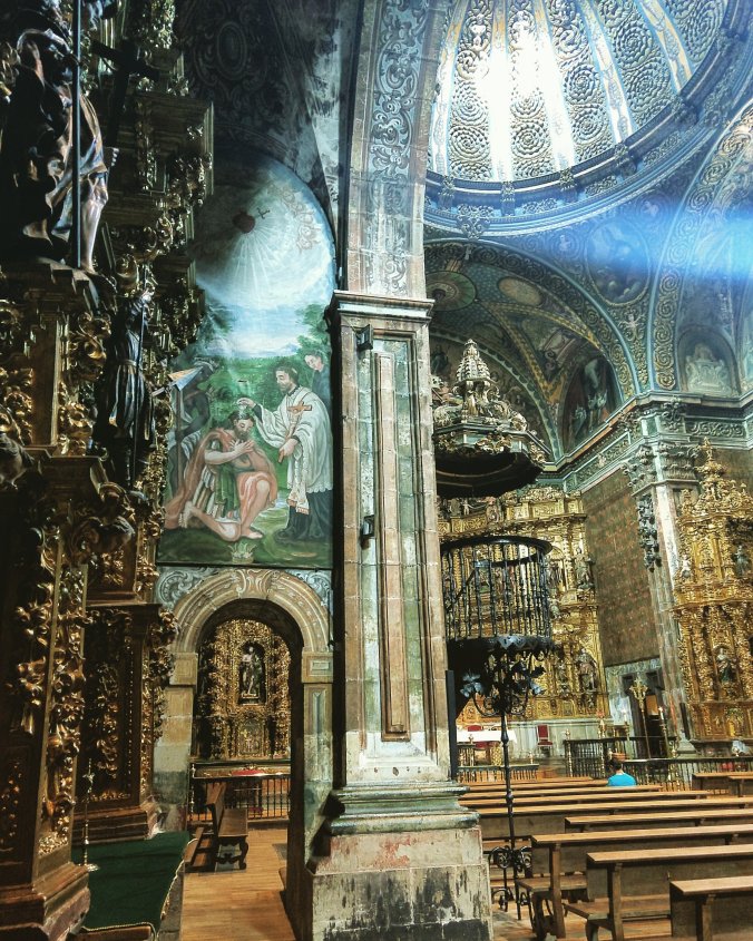 The wave of brutally hot weather was well underway by now, and when we arrive in a town at mid-afternoon during siesta, it feels like arriving in a ghost town. Los Arcos was no different, but we found a bunk at Casa de la Abuela (Grandma’s house), cleaned up, and moved as little as possible until it was time for the communal dinner of lentils and sausage and salad. This was one of many nights on the Camino when Mike and I were the only English speaking pilgrims at the table and the conversation just sweapt around us. The church at Los Arcos is surprisingly beautiful, with much of the stone walls and arches still painted in brilliant colors, rather than faded to one of the many colors of J Crew chinos (stone…ivory…khaki…vanilla…eggshell…)
