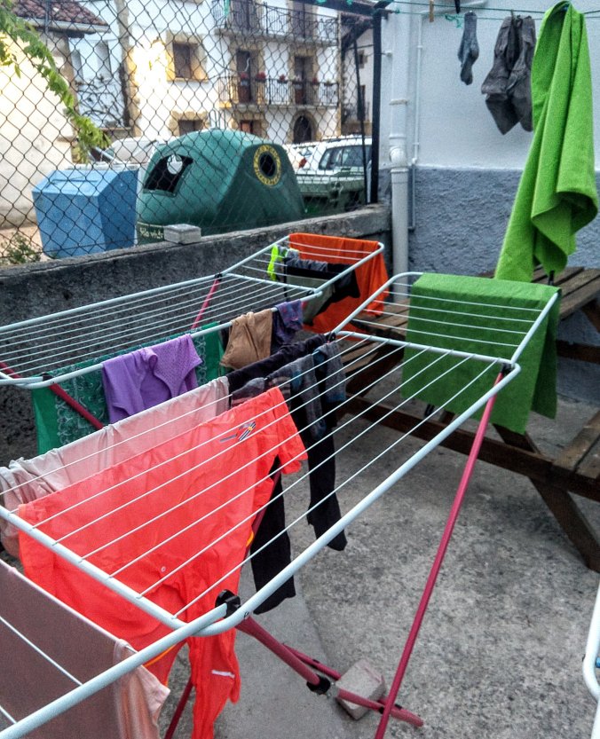 If all municipal albergues are like this, I’m not impressed. Only 8€, but you get what you pay for. The bunks and pillows had rubber covers, like in a prison, and the electricity kept cutting out. There was no meal and no restaurant in town, so the only dinner option was to buy provisions at a small shop and cook at the albergue. With 36 guests all cooking on one 3-burner electric stove (when the electricity was available) it was a frenzy. Have you ever been in the ski lift line at Vail when the line is full of European tourists? Everyone jostling to be at the head of the queue, poles and elbows flying? The albergue kitchen was just like that. Mike put our pot of water for pasta on to boil, and someone else would move it of and put their own pot in it’s place. Repeatedly. We ended up with very al dente pasta, even “al dente-er” veggies (aka raw) and canned meatballs. And with a very cranky disposition. Maybe in the future we’ll pay a few Euros more and have a more pleasant experience.
