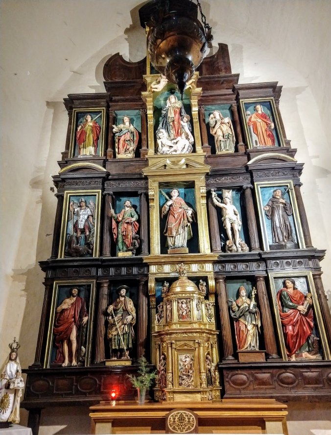 It was a short day to Pamplona, of only 15.4km, and on the way I formed a plan. We would splurge on a private room in a pension (45€ with shared bathroom) Mike would rest his knee all afternoon – only leaving the pension for a meal and maybe to visit the pharmacy. We would buy him: a knee brace, the European equivalent of Ben Gay, and any high-powered anti-inflammatory that they sell in Pamplona, and we’d light a candle for him in the cathedral. And then we agreed to part ways -Mike would take the low road and I’d take the high road and we’d meet in Pamona. I climbed a steep dirt track to the Iglesia de San Esteban built in the 12th century with one of the oldest bells in Spain (1377) and truly felt like a pilgrim for the first time. This hidden church had a stunning alter and the nice nun at the door let me climb to the bell tower and ring the bell.