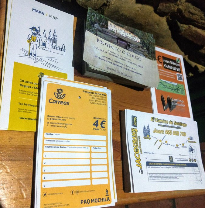 There are a number of competing companies that will carry your pack from town to town for about €5 per day. You don’t even have to plan ahead or commit to the whole trip. If you’re having a rough day, or you’ve got bad blisters, or the next day’s route is particularly hilly, your albergue can arrange for luggage transfer tomorrow. Pilgrim Hack! If you’re traveling with a partner, combine your heavy great into one bag for transfer and carry the rest and you’ll only spend €5 for the two of you! (No, Mike and I haven’t tried this yet. Did I mention we do things the hard way?)