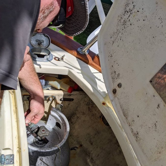 And then… After all this productivity, we ran into our first unpleasant surprise of the season. While testing the propane system, Mike discovered a leak. When he turns the propane on at the tank, we can hear the hiss of gas escaping, and can smell the propane. Luckily, the solenoid still works (we replaced it our first year) so we can narrow down the source of the leak to the external part of the system – not something leaking within the living space of the boat. Theoretically, this should be easier to trouble shoot and fix. However, we’ve squirted soapy water in ever hose and connection, watching for bubbles, and we haven’t found the source of the leak yet. Wish us luck as the search continues!