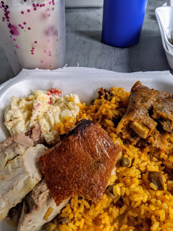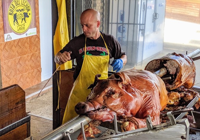 Lechon is roasted whole suckling pig. Each restaurant has its own secret recipe of marinades and spices. And of course, each restaurant insists they are the first and the best! At El Rancho Original, first order a pina colada at the tiki bar kiosk out front. The bartender will ask “con ron?” “with rum?” and I highly recommend you answer yes 😎