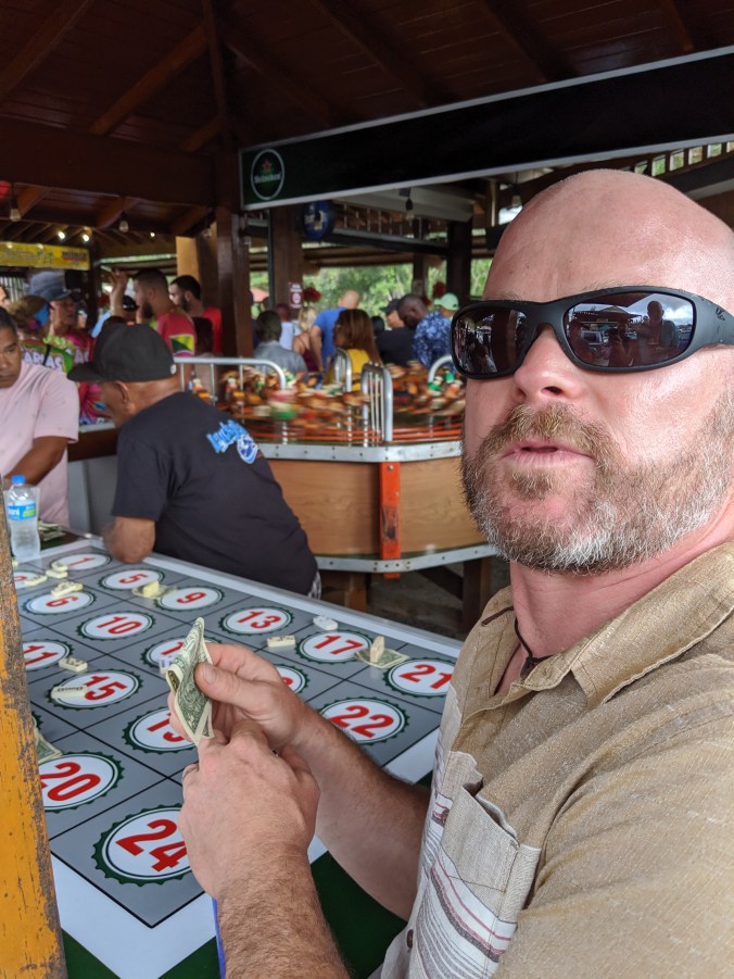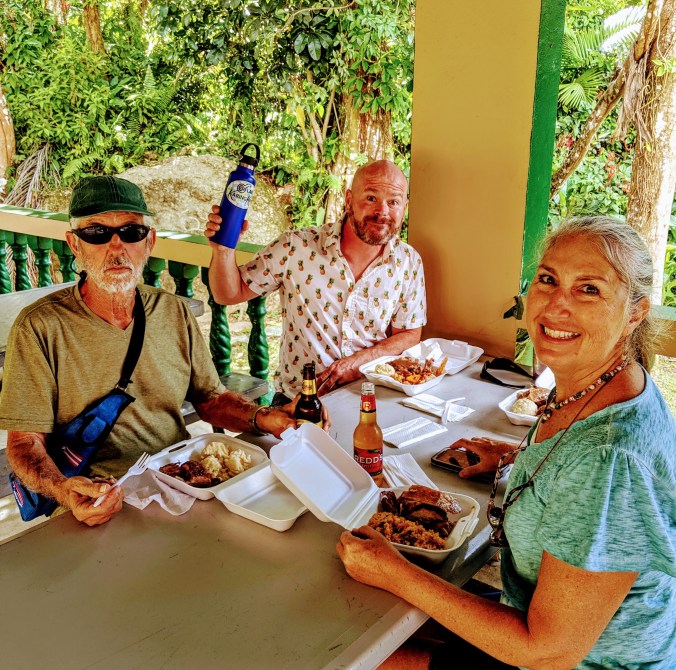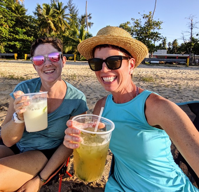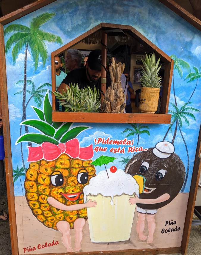 Beautiful Luquillo Beach is only about a 20-minute drive from the Puerto del Rey marina. So when we needed a beach fix, this was our go-to spot! At low tide, you can walk for over a mile on the sand, connecting several public beaches, and the tall palm trees and red wooden life guard stands add to the natural beauty of the water and sand. When we tired of the beach, we introduced each of our cruising friends to the wonder that is Mojito Lab. It’s basically a food truck for mojitos – each one hand made and muddled to order, with fabulous flavors such as passionfruit, coconut, and tamarind. At $11.15 for a 32 oz drink, Capt. Mike and I like to share (after negotiating on who gets to pick the flavor) and that way our drinks never get warm!