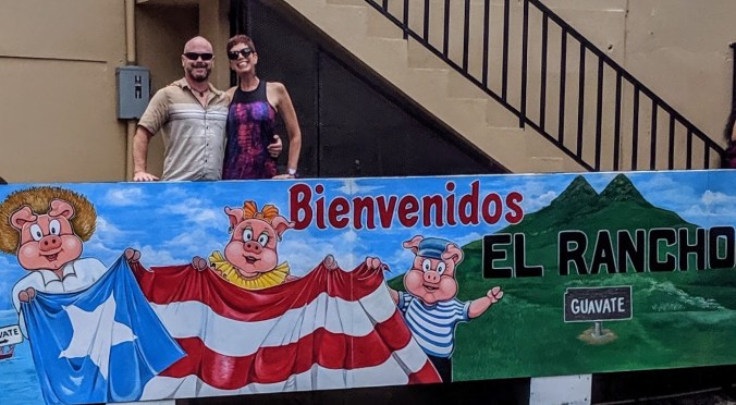 When we felt really adventurous, we piled into the rental car and drove WAY up into the mountains of central Puerto Rico to Guavate to check out the famous lechoneras on Pork Highway. What a scene! After about 45 minutes of highway driving, we turned off onto a super winding, always climbing mountain road. Now don’t get fooled by the first lechonera you see – keep climbing, keep climbing, to find the where the locals go on a Sunday afternoon. When the road comes to a T so you have to turn right or left, and you can barely hear your passengers over the sound of the salsa music, you’re there!