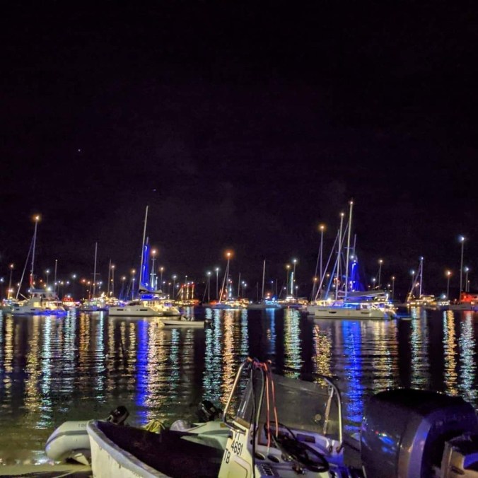 Finally, the night of the party arrived! There’s a term “Cruiser’s Midnight” which roughly equates to 10:00 pm. Maybe earlier on some boats! We’re kind of a rise with the sun sort of crowd. So I wasn’t quite sure how we’d deal with a social event that required us to actually stay awake until real midnight.