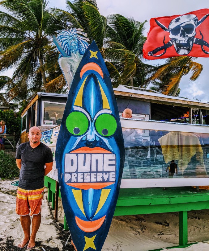 We FINALLY made it to Bankie Banx’s Dune Preserve just before the music started. It’s a bit different than your usual beach bar – a rambling wooden property built a bit back from the beach, with sea grape bushes and other dune vegetation growing through the gaps. And there’s definitely a pirate theme. Capt. Mike felt right at home. Bankie Banx is a world-renowned musician, so even though we’d planned to be back at the boat before dark, we couldn’t pass up the chance to see him live. Besides! All the celebrities come here on their visits to Anguilla. The bartender showed us where Cuba Gooding Jr signed the wall last summer. And he regaled us with stories about when Justin Bieber arrived unannounced and asked to perform. (Bankie Banx had never heard of him 😜) We thoroughly enjoyed Bankie’s set, which ranged from raggae to blues to soul, and we’d have stayed much later except that the wind picked up sending a thick cloud of that sugar-fine white sand through the bar, and chasing us out. I’m pretty sure we fit as much into our short stop in Anguilla as we possibly could!