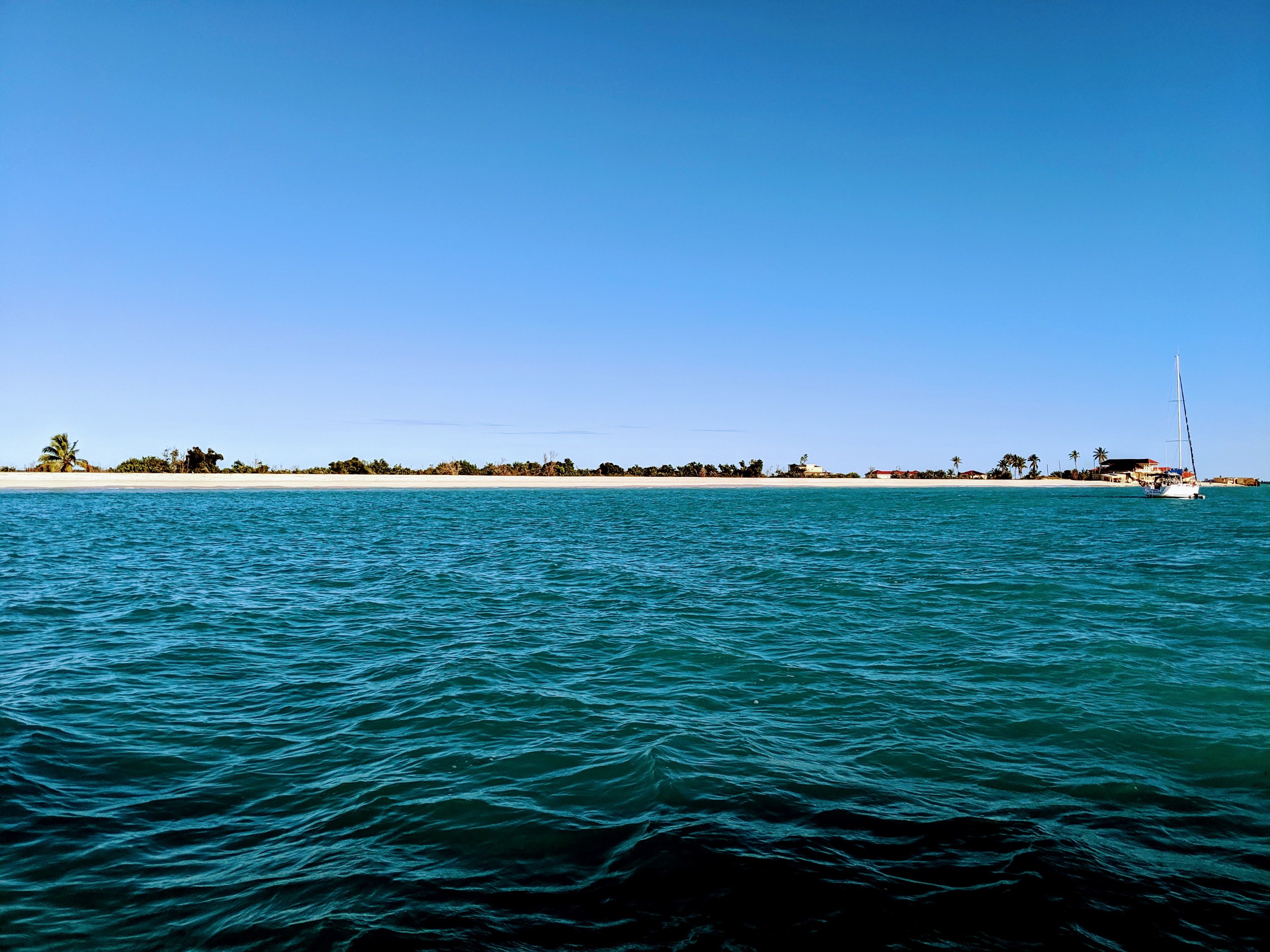 At least we WOULD have a good dinner if we could herd those grumpy lobsters onto our boat, and could figure out how best to clean them and cook them. So Capt. Mike is in charge of sailing, and I guess I’m in charge of killing lobster. I googled “how to clean a Caribbean lobster without tools”, and it goes something like this…. First, put on a pair of work gloves to protect your hands from the spiny bits. Then grab the body of a lobster in one hand, and it’s tail in the other and pull and twist. Drop the body overboard quickly, so you don’t have to watch it twitch or confront the reproach in its beedy little eyes. Save one of the long tentacles because you’ll use it to pull the digestive tract (aka the poop chute) out of each tail. Then rinse well with seawater.