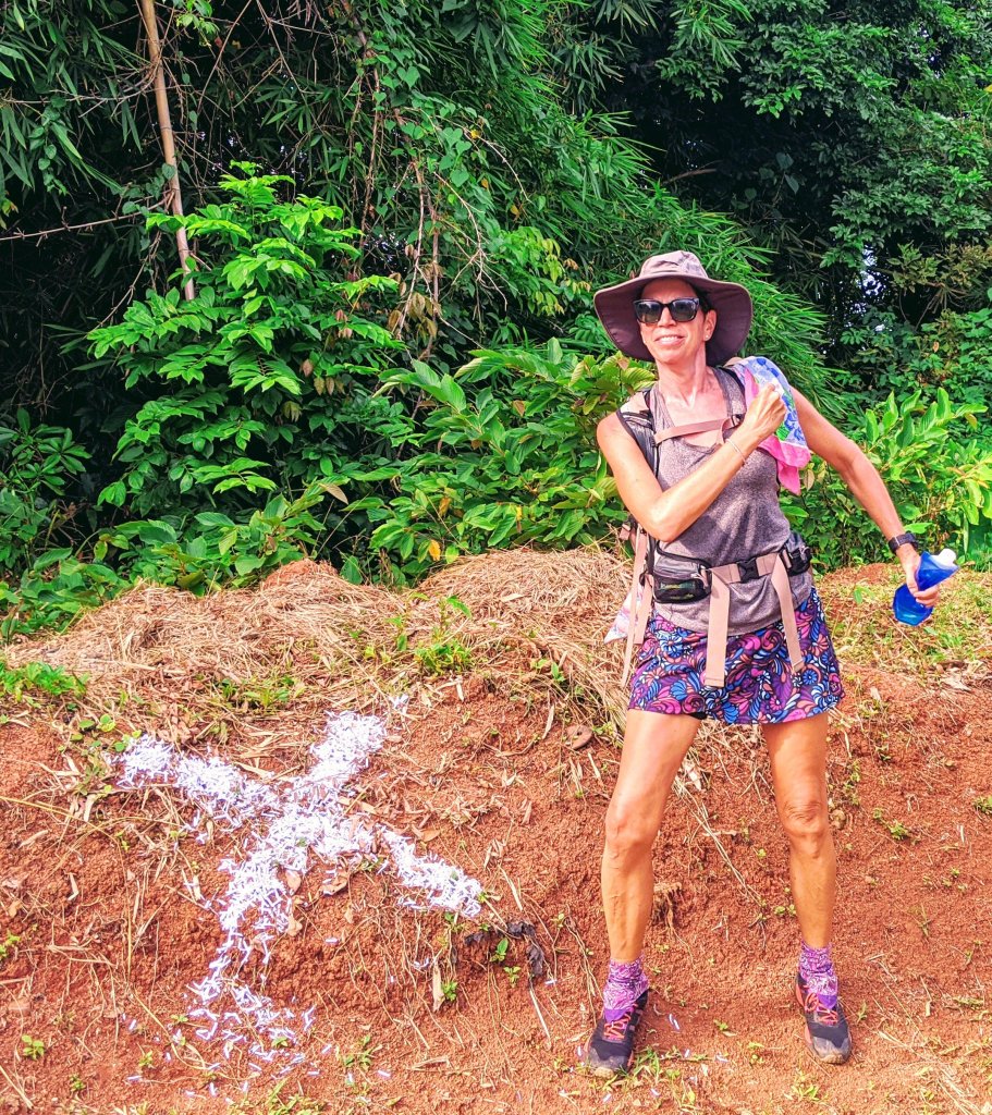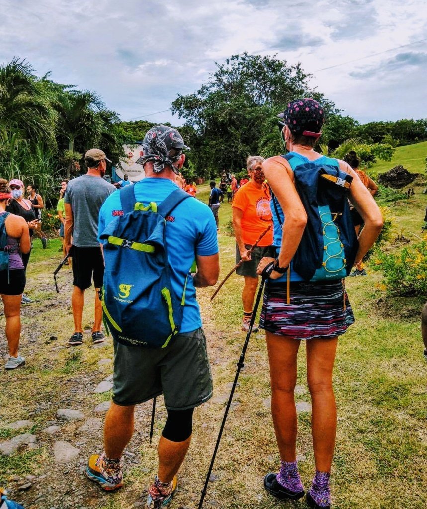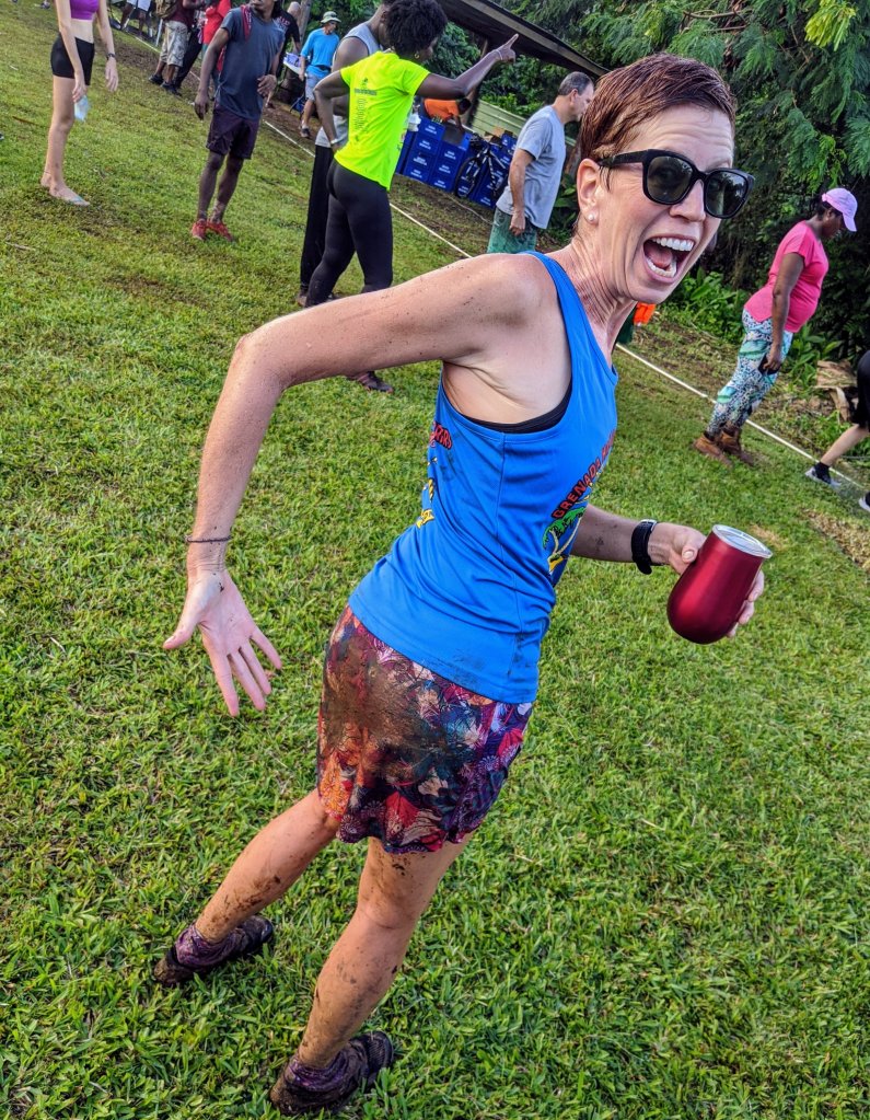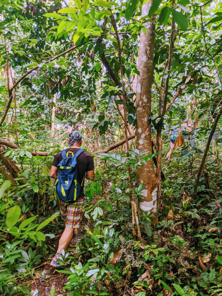 But we made it! If you have any picture in your mind of trail running on flowing single track through an aspen grove in the mountains of Colorado…. that’s NOT what a Hash in Grenada is like 🤣 They call it a run through the bush, but to me, it’s a jungle! You push through greenery and vines grab at your ankles. You wade through mud, and sometimes streams. You pass avocado and mango trees, sometimes trampling rotting mangos underfoot, cacao bushes with their bright red pods, the trail (when there actually is a trail) is frequently crossed by lizards and spiders.