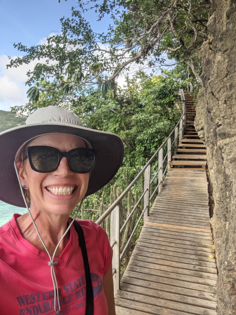 Luckily, we’ve fallen in love with this beautiful small island and we’re in no real hurry to leave! The anchorage is well-protected from the Christmas winds (although it gets rolly at times) and there’s a lovely winding boardwalk that connects the beaches on the south side of the bay to town.