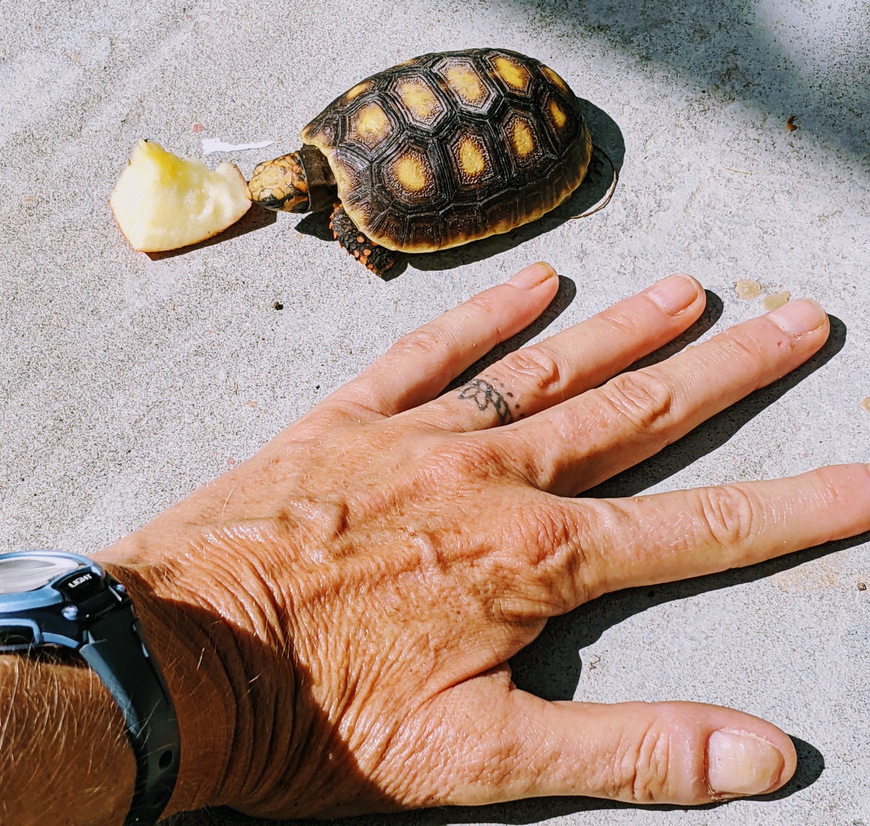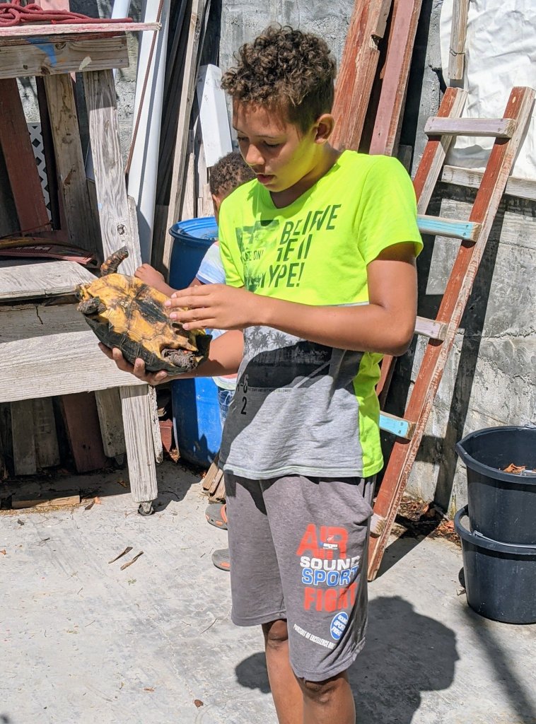 Sometimes, the walks bring delightful surprises! Such as young Miguel who adopts and feeds the tortoises he finds in his garden…