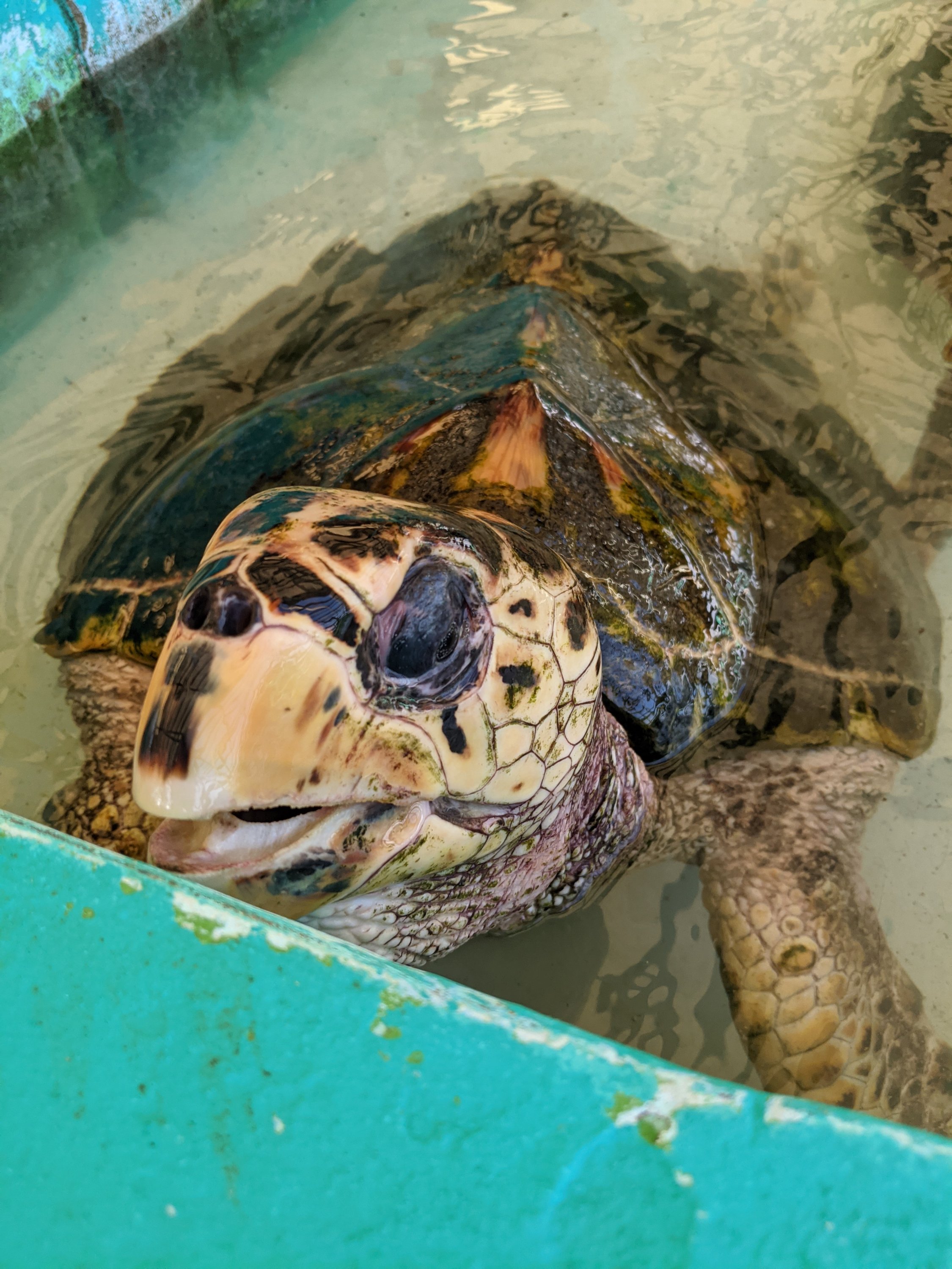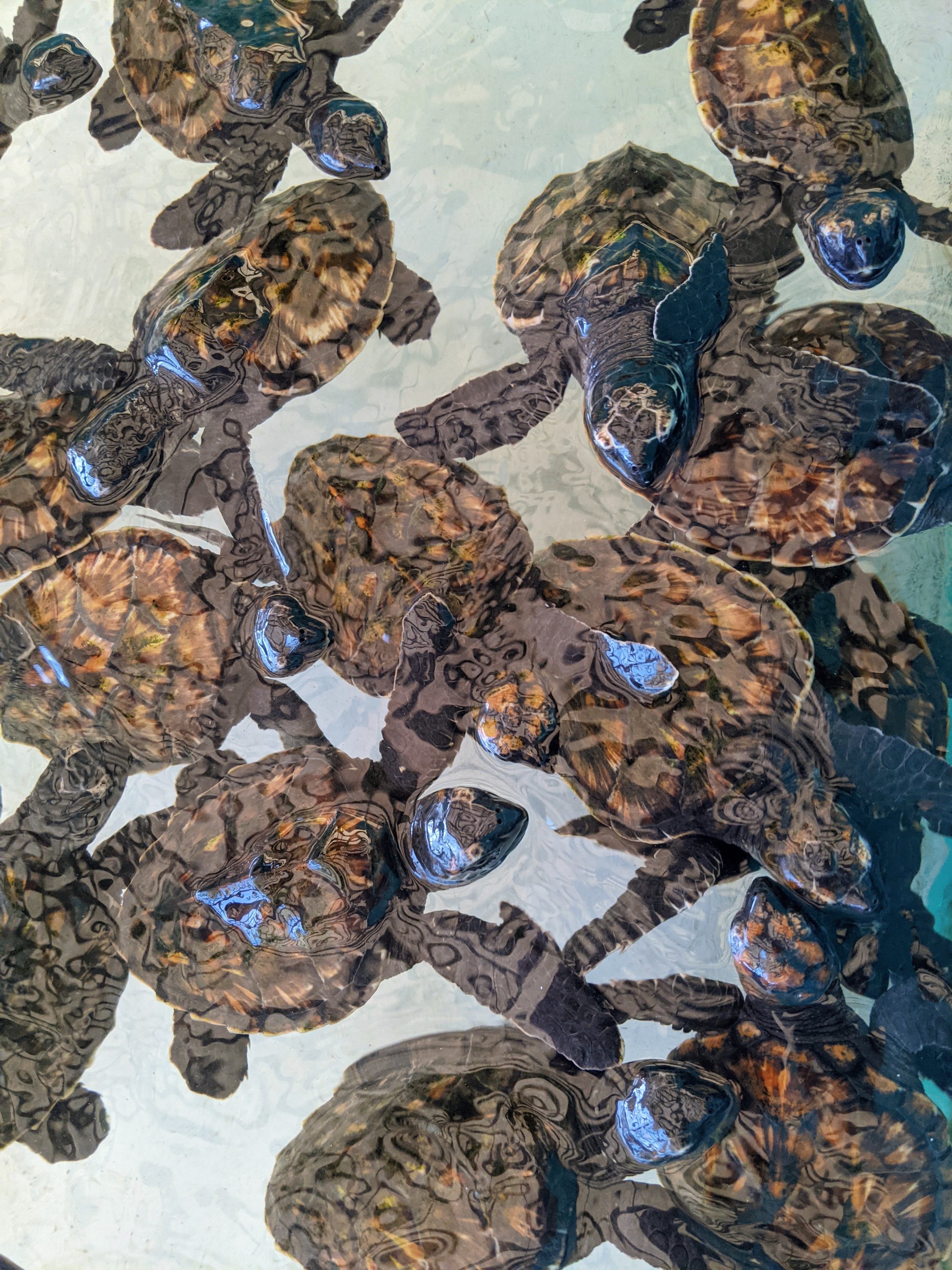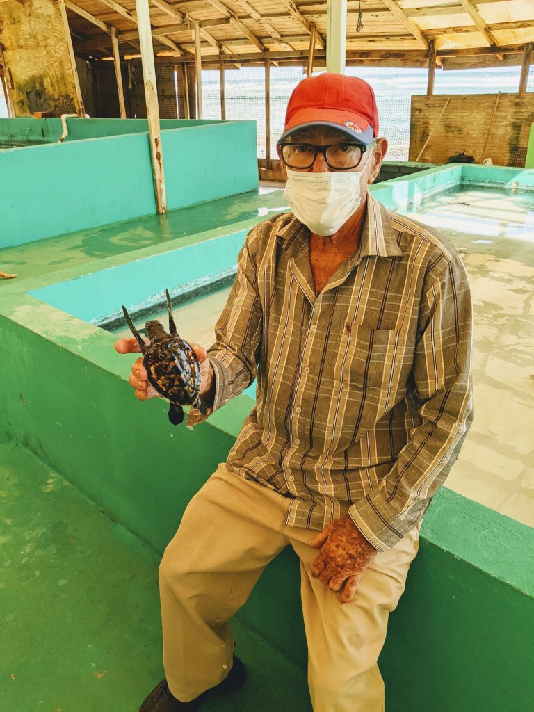 On our most recent walk (to the end of the road in a northeasterly direction) we visited Mr. Orten King at the Old Hegg Turtle Sanctuary. 82 year old Mr. King has been working to preserve and protect hawksbill turtles for over 25 years. He maps and protects turtle hatching grounds, and raises baby turtles in his salt water tanks for three years before releasing them back into the wild. I’d certainly rather see a turtle in the wild rather than in a tank, but I hope this little project is successful in increasing the hawksbill population here in the Grenadines!