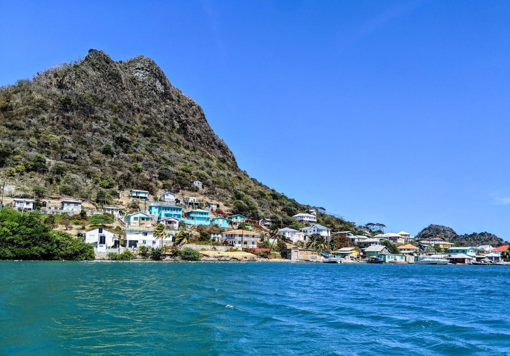 It starts with a wet dinghy ride to the tiny town of Ashton. Before jumping into the dinghy, don’t forget to grab a small bag of trash to throw out at the dock, and don’t forget shoes (been there, done that). We usually stand up in the dinghy to attempt to get soaked with salt water only from the knees down. Then a two mile walk to the slightly larger town of Clifton – luckily there’s only one big hill to conquer on the way. I keep a running contest going to find the cutest baby goat family on our “urban hikes”. Extra points for little black sheep. Clifton is bustling with many small grocery stores, veggie stalls, and even a few clothing shops. Streets are busy right before lunch time – I guess you could call it Union Island rush hour.