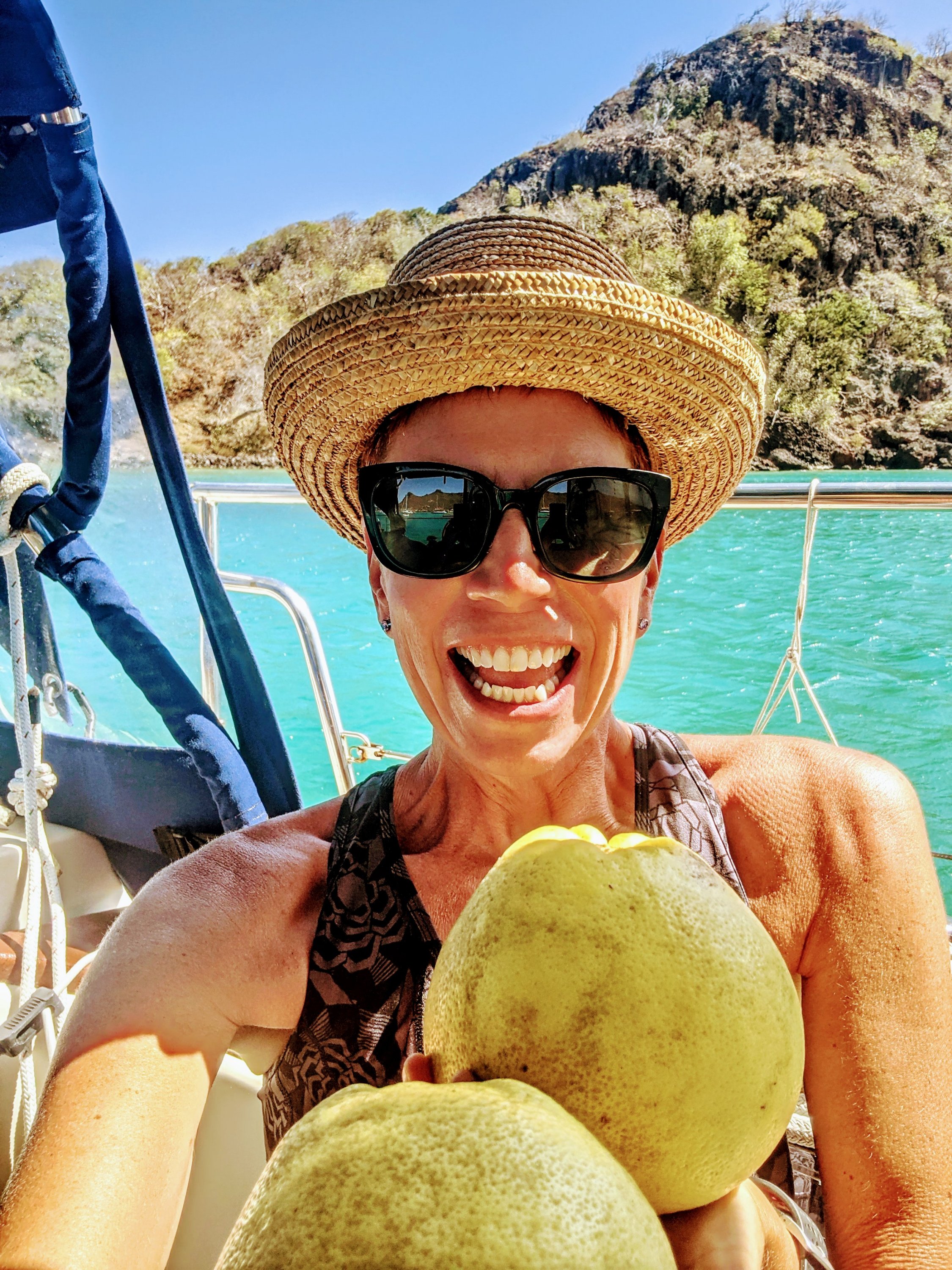 Now this is not at all the way the islanders shop. They seem to buy a day or two of food at a time and shop more often. Island friends say it’s because they rarely have enough cash to buy much at one time. Grocery stores usually have staples such as rice, flour, and sugar repacked into small plastic bags of a pound or 2 cups in addition to the 5- and 10-pound bags I’m used to finding. I really appreciate how lucky I am to be able to afford fresh, healthy food – we can stretch our cruising budget by cooking fresh food on the boat instead of eating in pricy tourist restaurants regularly. And when I stock up like this, we can take Sanitas off grid and get away from civilization for a week or more at a time. I know that the islanders are really suffering due to the lack of tourist income in Covid times, so I don’t negotiate on the price of produce. Sometimes I’ll exclaim, “Really?!? That much?” and the shop keeper will throw in a piece of citrus or a few extra bananas ππ₯ππ