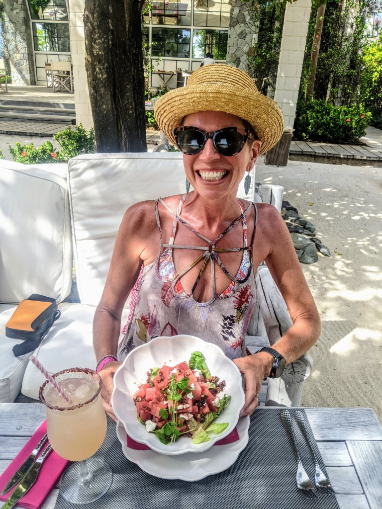 Of course, we’re still actually on a cruisers’ budget, so we mostly avoided the pricy marina restaurant. (As Chuck on VR says, “the prices in the restaurant don’t look too bad… Until you realize they are in US dollars instead of eastern Caribbean dollars”😲 That means everything cost about the times what we’d expect) But we treated ourselves for our anniversary and had a lovely meal: watermelon feta salad, ceviche, loaded cheeseburger, and lobster wrap. The food, drinks, and service at Shenanigans are all first rate!