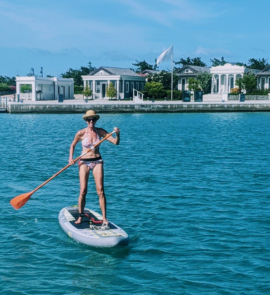 Since it’s a long way from the boat to the pool, we inflated our SUP and paddled or way around the marina. The water was so calm, it was delightful, and great exercise.