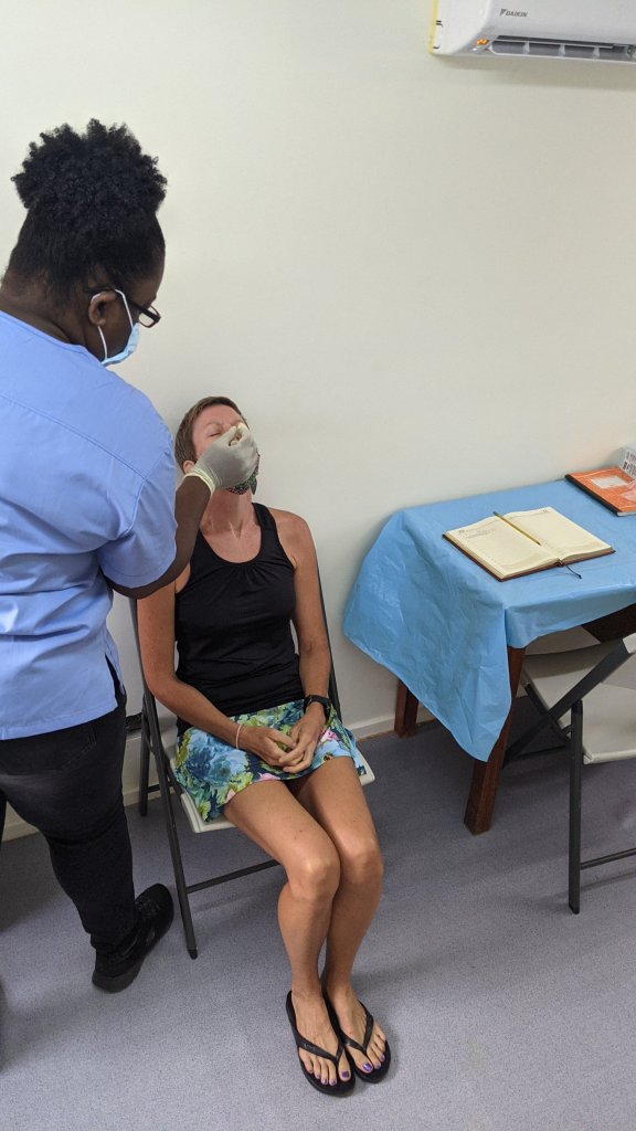 Negative test results in hand, I pestered the ports authority in Carriacou until they replied with an email granting us permission to sail to Tyrell Bay exactly five months to the day after we cleared in. How crazy is that? We cleared out on exactly the day our cruising permit expired and made the short nine-mile sail south. The travel gods continued to smile on us, as we passed our health assessment quickly, and before we even made it back to the boat, we got called back for our “arrival in Grenada” Covid test. Before noon on Wednesday, we settled in cheerfully on Sanitas, making the best of our 48-hour wait for results and freedom.