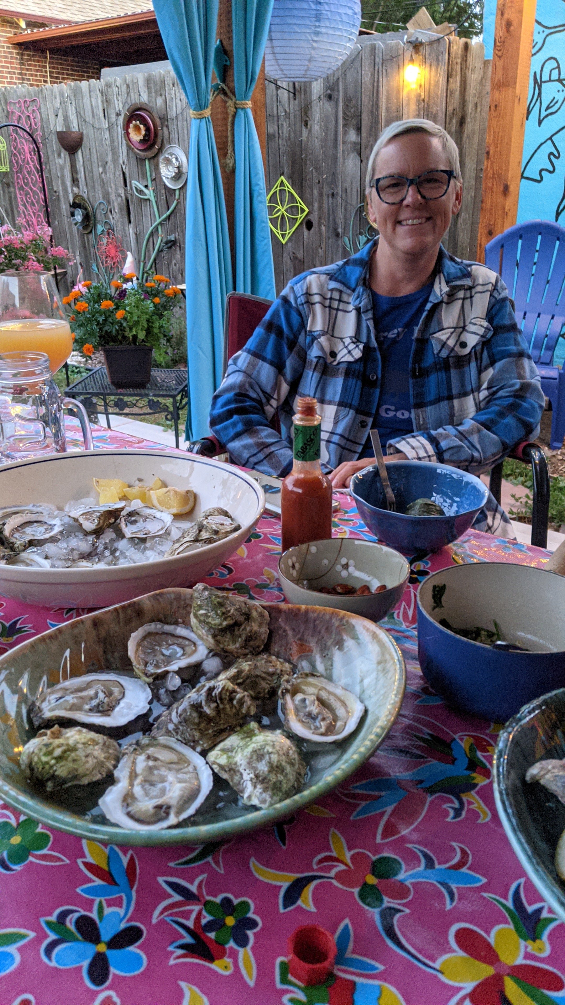 We spent our last weekend in CO with Micki and Nathan in Denver. We got to enjoy a beautiful summer evening on their Caribbean themed patio, the Rhum Shack… with very non-Caribbean oysters, champagne, and cheese.