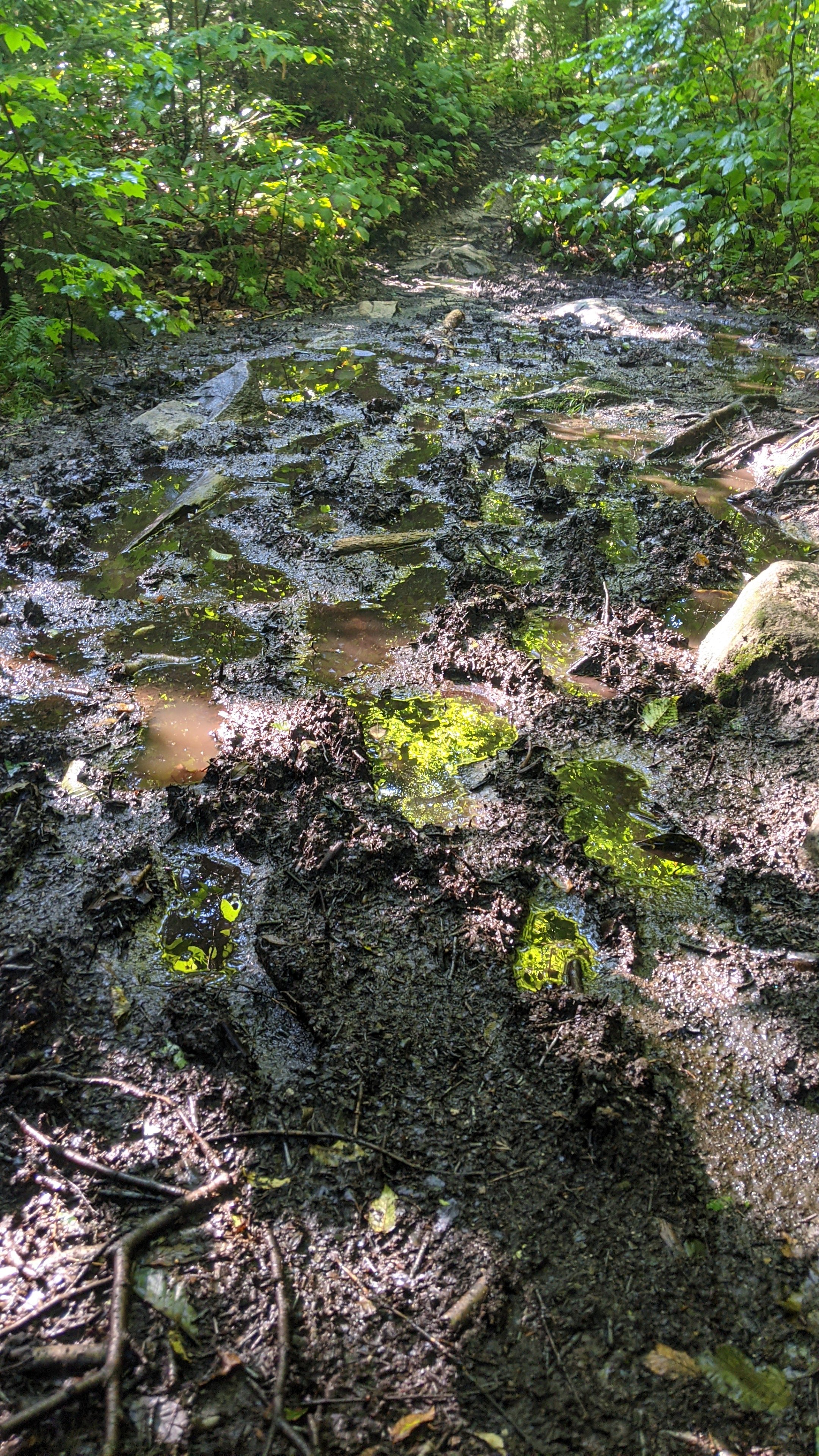(Rained from 2pm to morning with the remnants of hurricane Ida. My hiking clothes blew off the line into the mud overnight, so I started the day soaking wet.