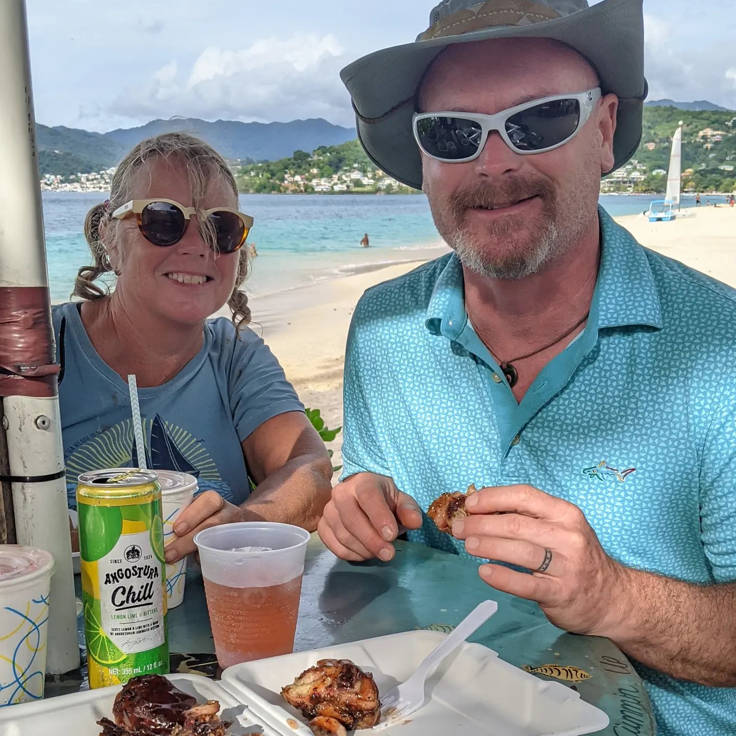 Each time we visit Grenada, we try to explore a different corner of this beautiful country with its gorgeous mountains, rain forests, and waterfalls. This time, Steve and Karen drove us the Grand Etang national park and to Seven Sisters waterfalls. Pro tip: Even if you’ve recently hiked across the entire state of Vermont, and you’re feeling kind of cocky, you should still accept the offer of a bamboo walking stick when offered one. That jungle mud is slick! There’s nothing like a swim in the pool under a beautiful waterfall! Especially when you can end the day by celebrating your exertions with jerk chicken on a beach.