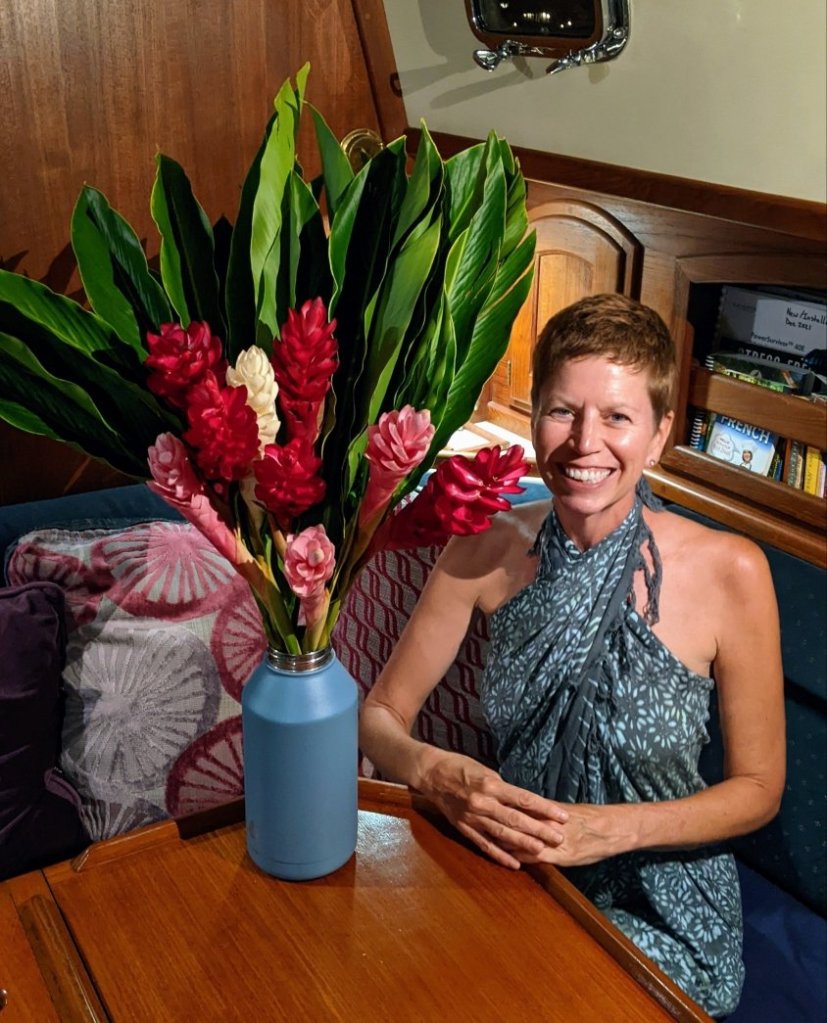 Last year on New Year’s Eve we partied like it was 1999….and then four out of the eight people at our table came down with COVID and had to isolate on their boats for weeks. This year, since we’re vaxed and boosted, we planned to go to the Frangipani for steel pan music and a DJ – we even bought tickets. But on the afternoon of New Year’s Eve, two of the most popular tourist restaurants on the island shut down suddenly because staff tested positive for Covid. We hemmed and hawed and decided not to risk it. Instead, a friend invited us over to his catamaran and we had a lovely little 5-person party on the deck with charcuterie and champagne. We could hear the music just fine from the anchorage – we didn’t miss a thing. And as midnight struck, the boaters made their own firework show, lighting off expired flares in the harbor (Cap. Mike did not like firey things raining down near Sanitas at all)