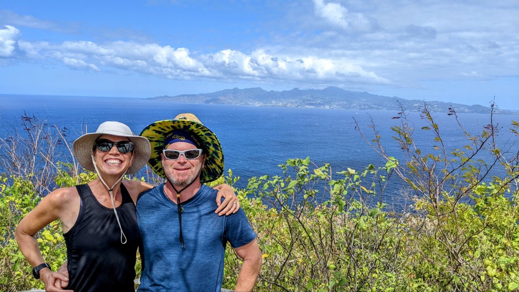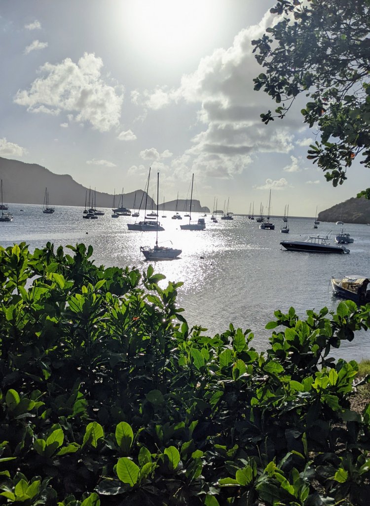 Sunday January 2nd started slowly on anchor in Admiralty Bay, Bequia. The holiday buzz was over, and our energy levels were a bit low. Capt. Mike eventually motivated to cook leftover lobster into a red pepper-onion-lobster omelette, and I perked up a bit after a cup of strong coffee. Friends on SV Camino messaged, asking if we’d like to go for a hike. Why, yes! Of course! So we left the dirty dishes in the sink, grabbed our backpacks, and hopped into our dinghy, Bug.