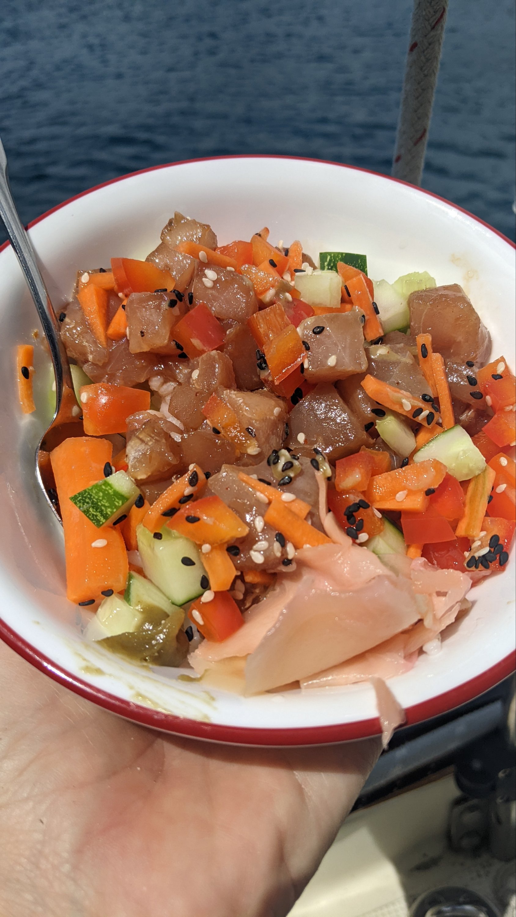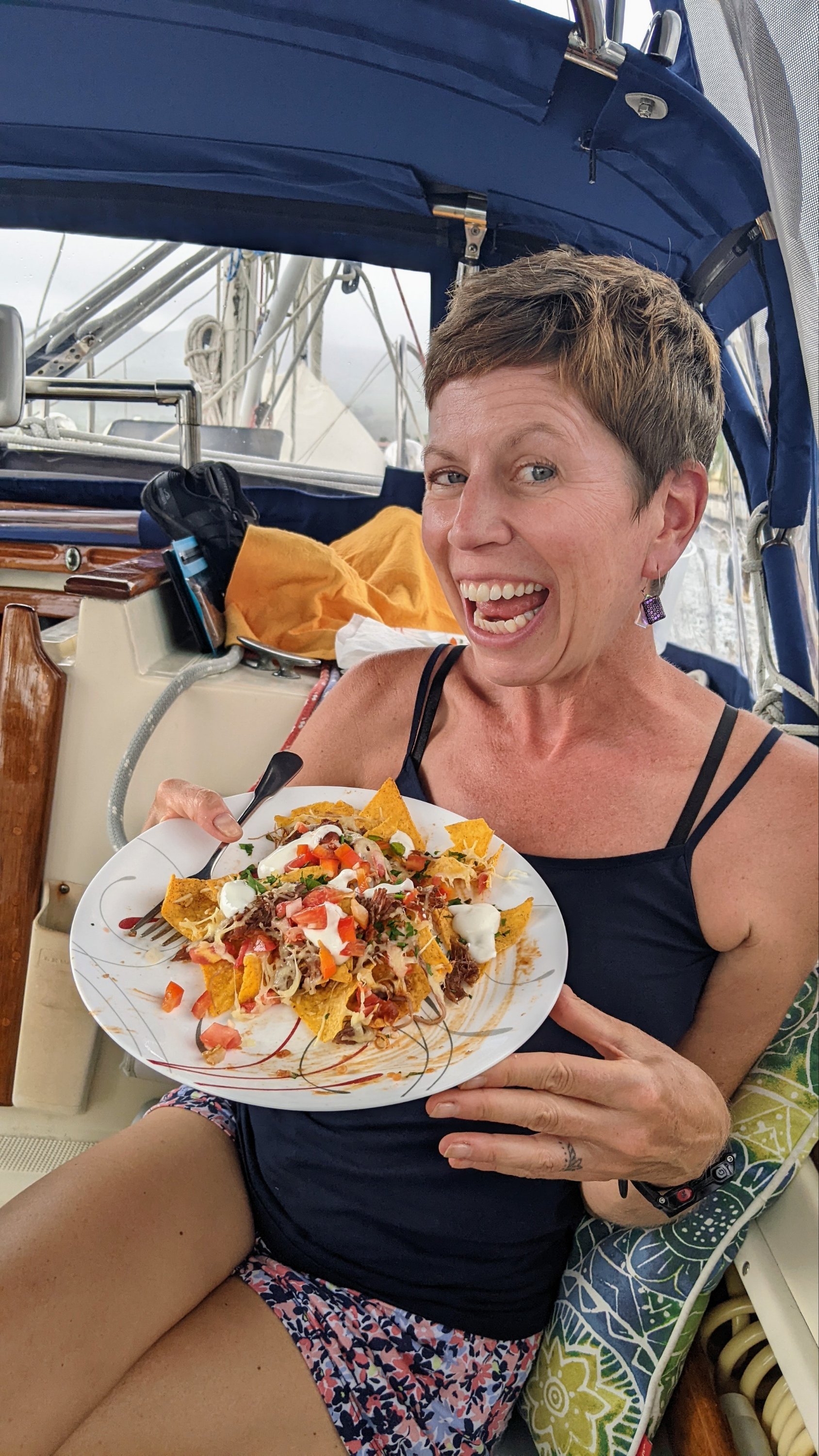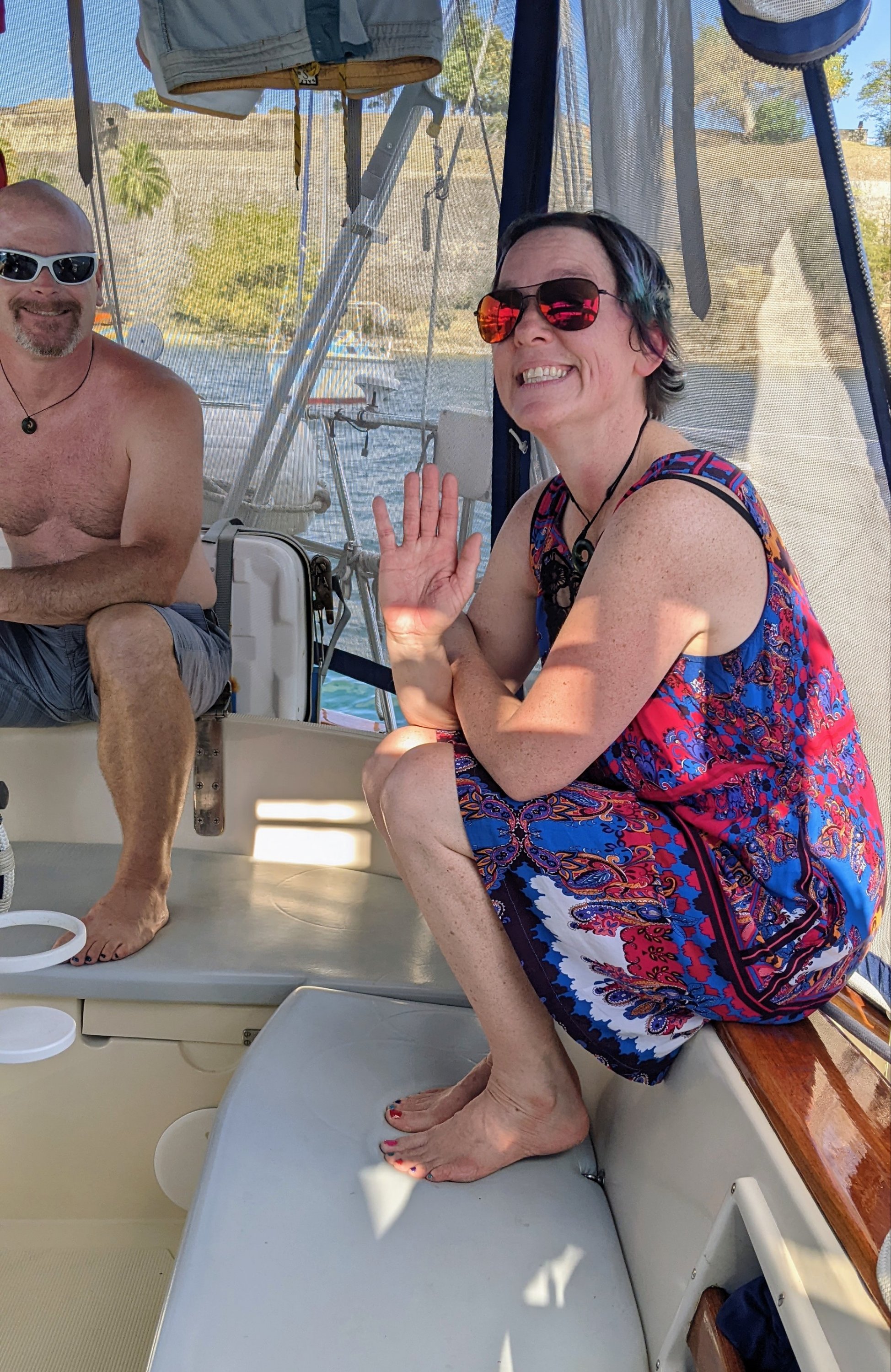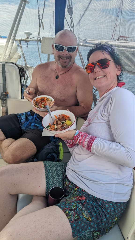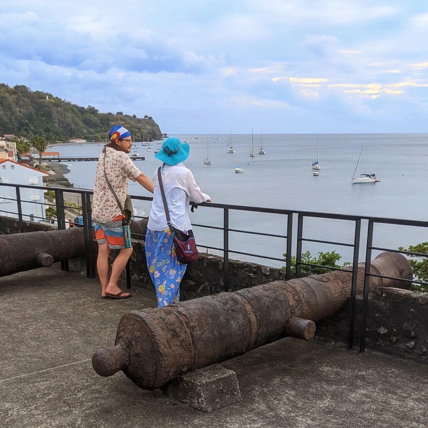 We used the French version of a hitchhiking signal (one hand out, index finger pointing down toward the pavement) and hoped for the best. Wonder of wonders! An English speaking French woman from St Barts stopped to pick us up and dropped us off right at the marina. And she also gave a ride to a local Martinique man who had done the Camino de Santiago across Spain the year before we did! Crazy cooincidence. All in all, we walked about 12 miles with tired feet, but no blisters. Capt. Mike definitely earned his rhum raisin and almond ice cream sundae.