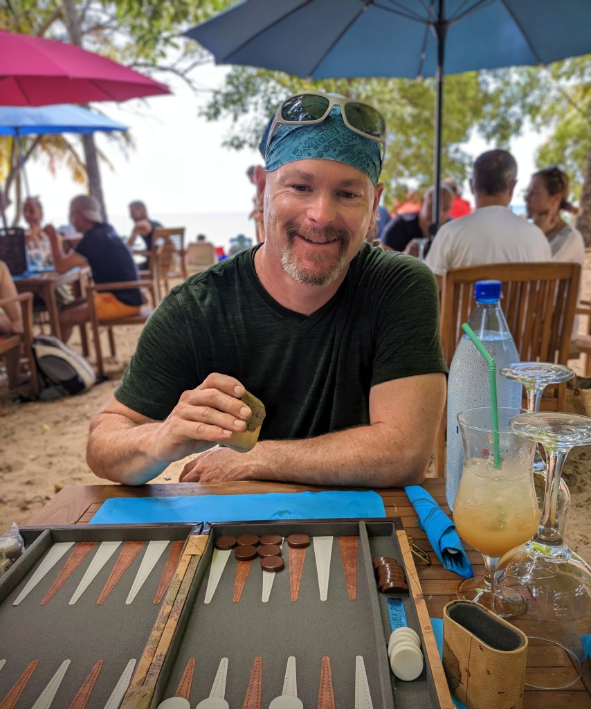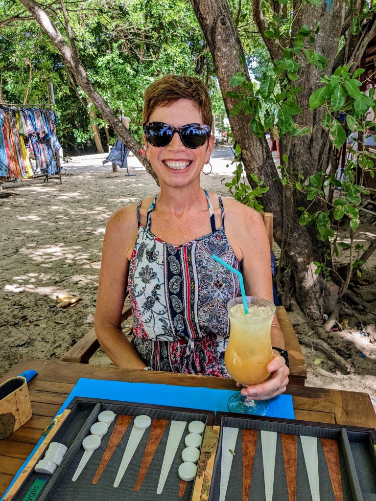 Service is island time slow, but we didn’t mind. We brought backgammon and as long as we made it back to the dinghy dock before sunset, we were fine. And heck, if we end up so on land at sunset, there are benches in the public square at the top of the dinghy dock just begging for people to sit, enjoy the sunset, and cheer on the kids playing games and giggling due to their ice cream sugar highs.