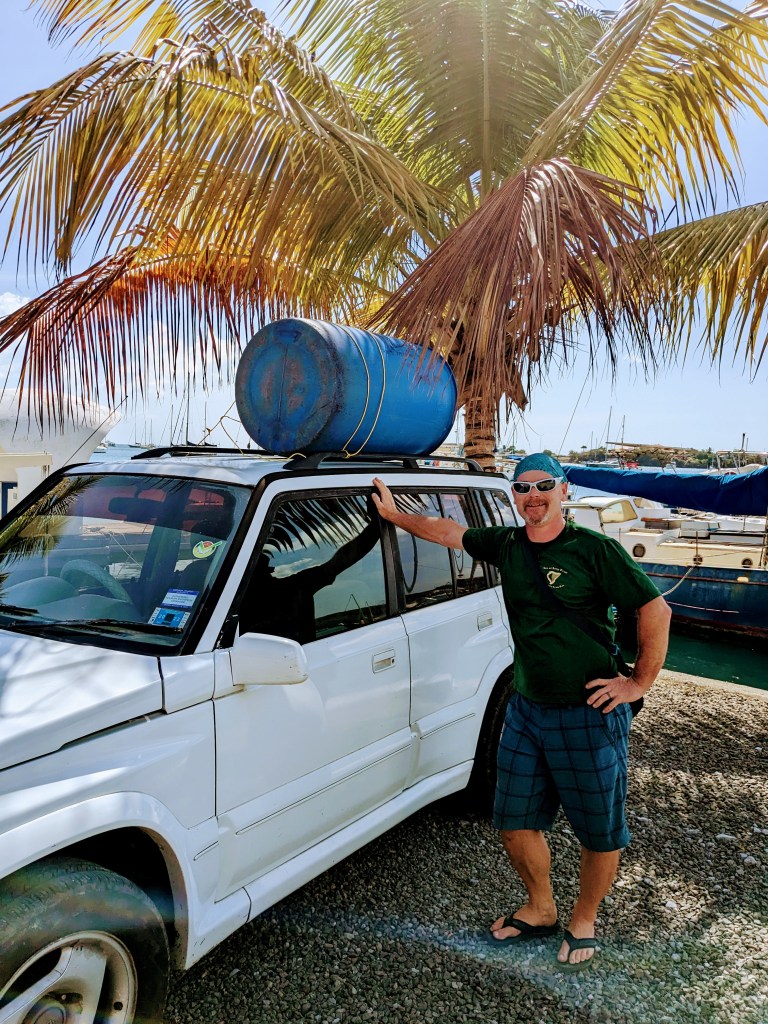 So we took everything out of the barrel, loaded it all into tote bags and shopping bags, made multiple dinghy trips from the boat to shore, and loaded all that stuff into a rental car.