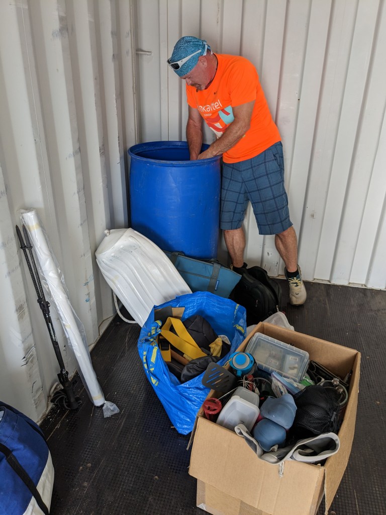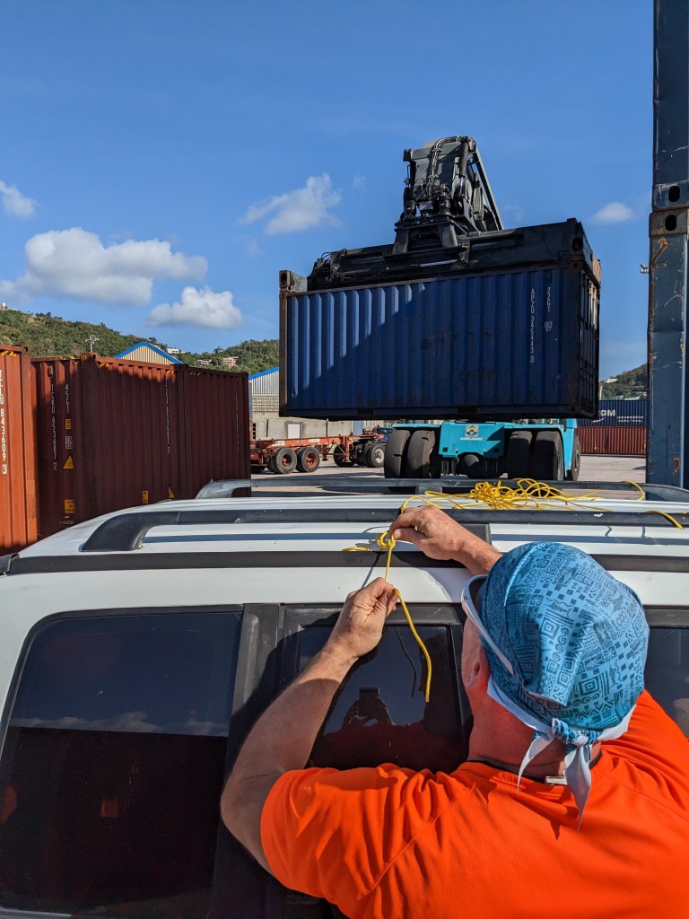 We donned our close-toed shoes and hi-vis shirts and rushed to the port. A very pleasant young man named Kelwin met us there and showed us to an empty container. Capt Mike set to work. Remember how we couldn’t carry a full barrel? That means we showed up at the port with two empty barrels tied to the roof of the car, with the car itself overflowing with all the stuff we hoped to fit inside them. Kelwin helped me carry bag after bag into the extremely hot shipping container while Mike worked his packing magic. Somehow, miraculously, it all fit. We were asked if Alana had “processed the customs form.” I assumed so, but when we called to find out, she said she’d come down to the port now to do it if, and we weren’t allowed to actually make our official delivery until the US Customs agent filed an ISF form but… the computer was down. We made a bunch of calls and I bit my nails, and eventually it all got done. We closed the lids on the barrels, sealed with a lot of duct tape, tipped Kelwin for his help, and left the port around 4:15. I guess we were on-time when you take into account the concept of “Island Time” We went home and as Mike was unpacking his bag, out fell the paperwork that we drove all the way back to the boat to collect. No one had asked for it again. And even as I am writing this week’s later from the US, no one has ever asked for it. Sheesh.