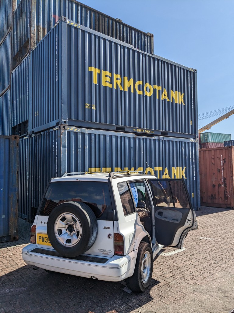 We worked hard all weekend, and by Monday morning we were ready to deliver our barrels to the port in St George’s. And then we got stuck. We couldn’t do anything until Tropical approved our paperwork, assigned us a container scheduled for that ship, and arranged for someone to meet us at the port. We waited… And waited.. and started calling them about every three hours. Nothing happened on Monday. Or on Tuesday morning. Remember we’d been given a 3pm Tuesday deadline? Finally we called Alana at Phenomenal and she called Tropical and finally we could proceed