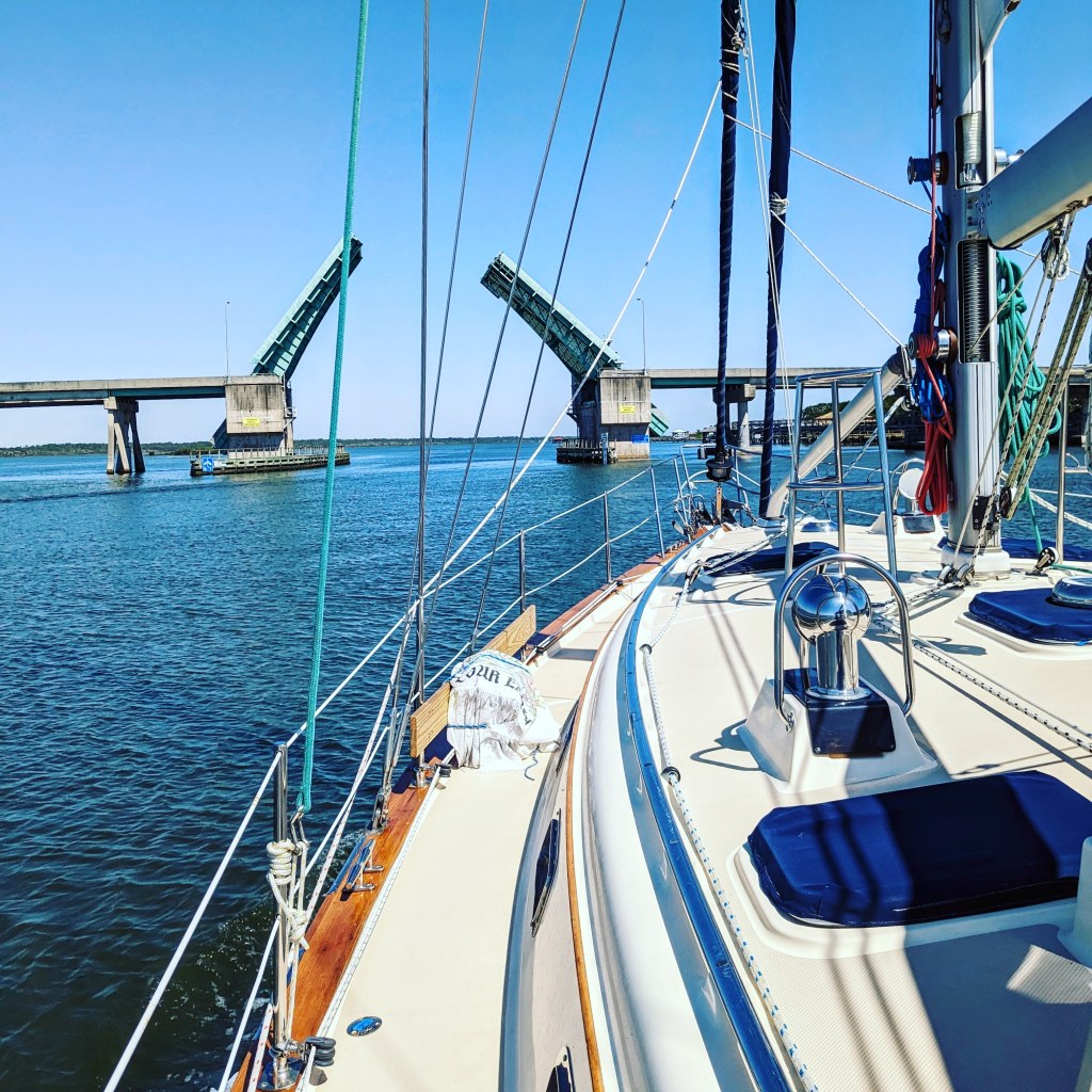After our busy stay in the boat yard in Fort Pierce, it felt great to be back on the water and on the move! We slowly made our way up the Inter Coastal Waterway, or ICW, from Fort Pierce to Brunswick GA exploring local communities along the way and getting familiar with our boat systems and electronics as we went. The ICW is generally protected water compared to traveling in the open ocean, and to keep in the narrow channel we mostly motor. Each day, we passed several bridges and it’s always a challenge to plan ahead, researching which bridges are tall enough for us to pass safely underneath and which we have to time just right around scheduled draw bridge openings.