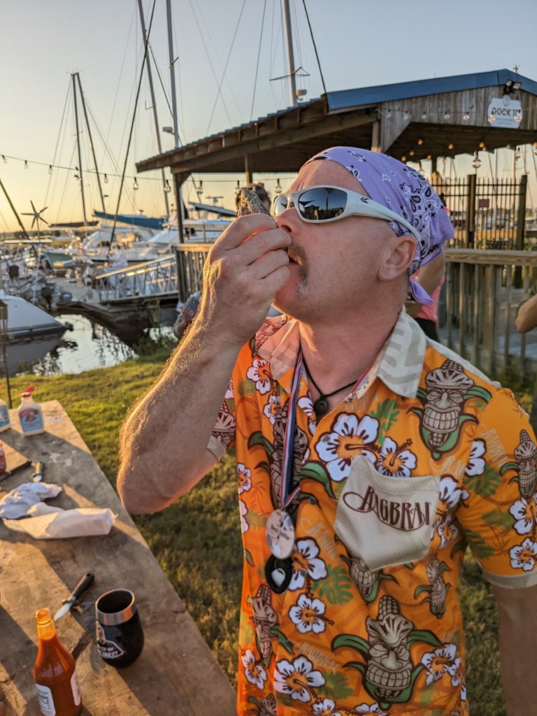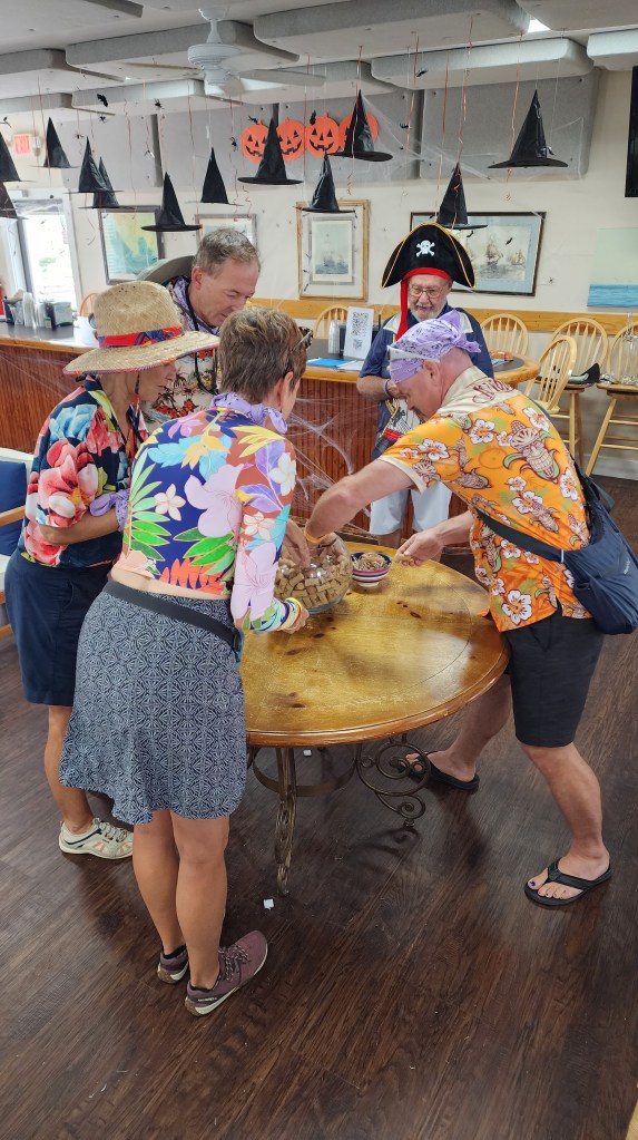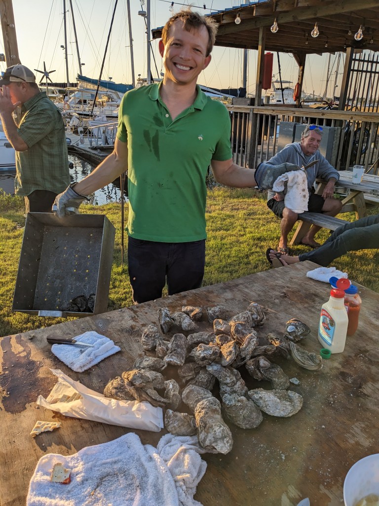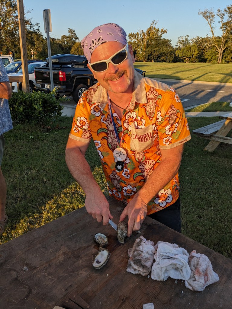 We didn’t win the race, but we sure had a great time! And the fun just kept on going! The marina held a customer appreciation oyster roast yesterday evening with three massive coolers full of oysters, a potluck of side dishes, and free wine and beer. I don’t think I’ve ever shucked an oyster before, so it was fun to learn! Mike says he doesn’t like oysters, but he sure ate a lot of them ๐คฃ Were very grateful to Brunswick Landing Marina for hosting such a fantastic event.
