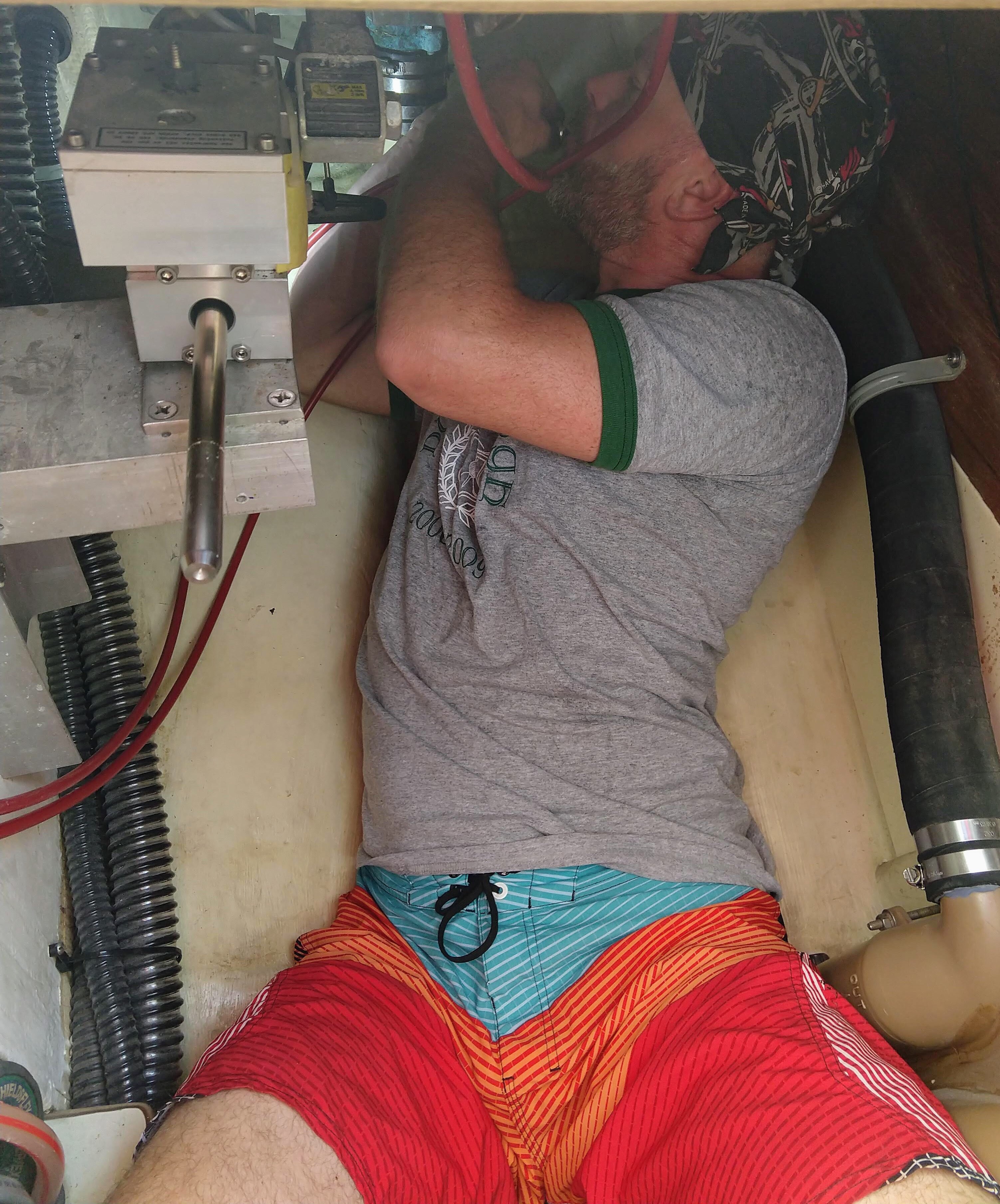 That gorgeous new sail bag whetted our appetite for progress, and we couldn’t wait to see the finished product. Along the way, we’d even added a few upgrades to our current system, such as shade panels on all sides of the cockpit, a water catchment system built into the bimini, and better rain protection. You know how you drive to Home Depot at least once a day while you’re in the middle of a big DIY project? Well Capt. Mike dinghied ashore just as often to buy new stainless fittings from Budget Marine, or added a mile-long walk to Ace Hardware for pvc pipes and bungees. And he and Frank worked together to get each piece installed perfectly. Frank worked his butt off, and got everything completed and installed within the two-week period we had free before we were scheduled to haul out at Spice Island Marine for the worst of hurricane season. Hooray! Finishing on schedule almost never happens! (Island time, and all 😁)